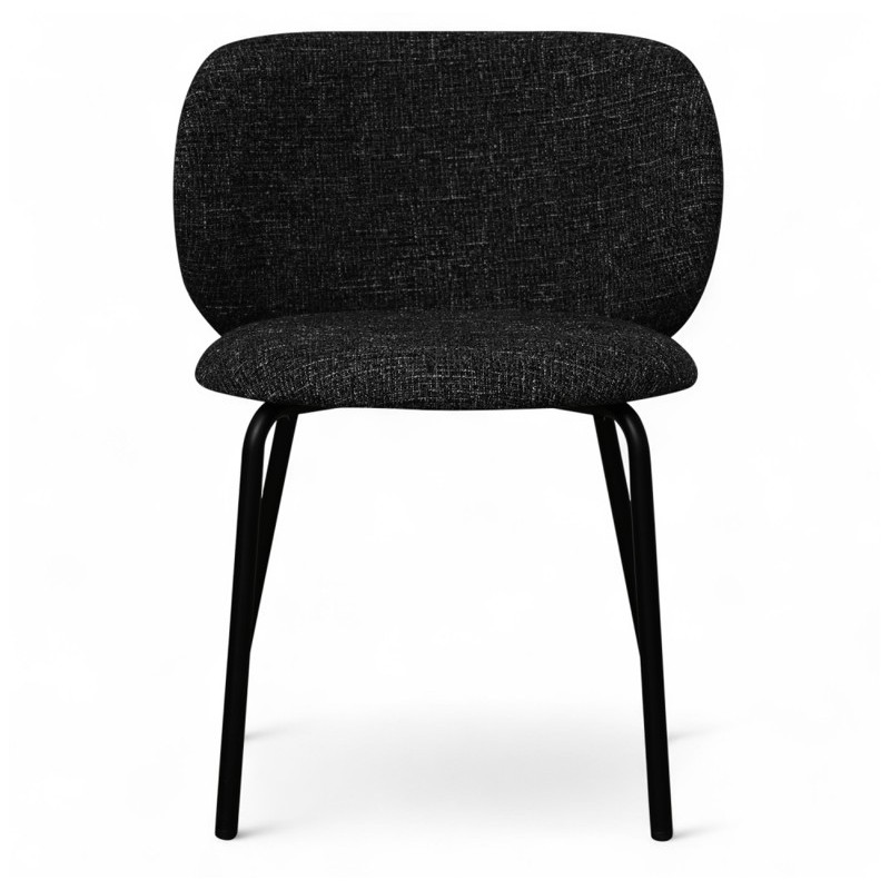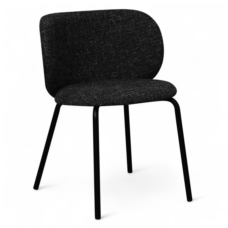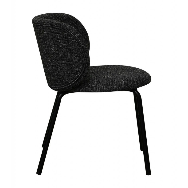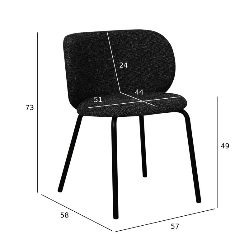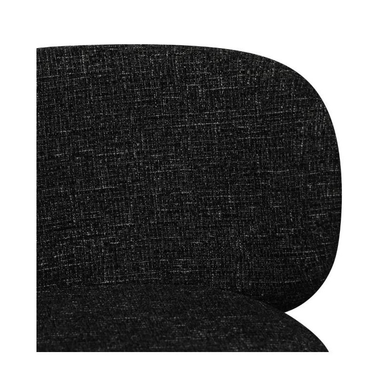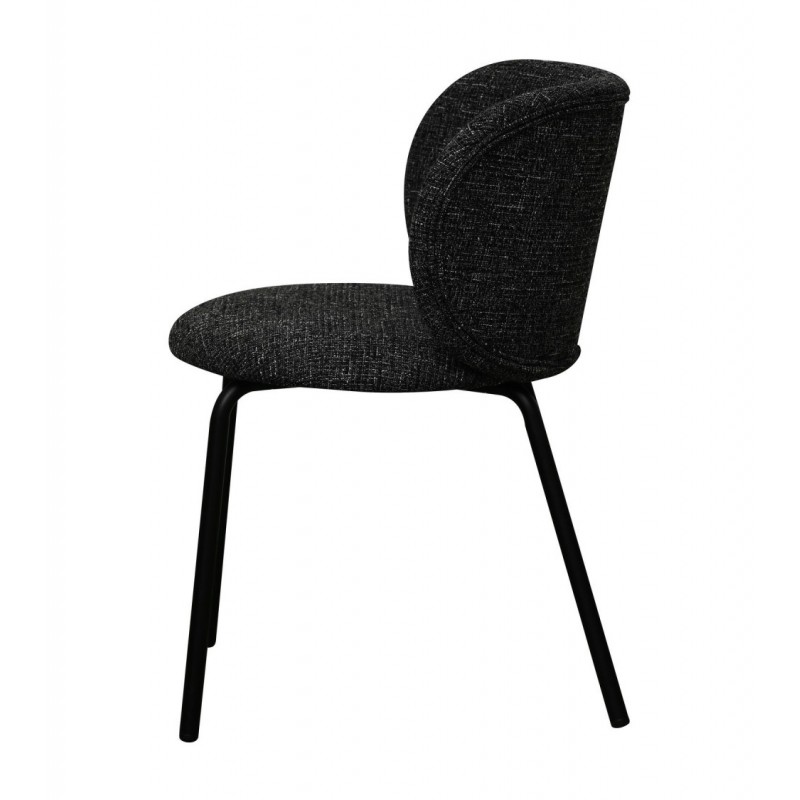 Krzesło NANNA to mebel, którego tapicerowane siedzisko zostało postawione na czarnej smukłej metalowej podstawie. Siedzisko obite zostało modną tkaniną w odcieniach czerni, którego wyjątkowy charakter podkreśla gramatura zastosowanej na nim tkaniny Boucle. Bez wątpienia kubełkowy kształt siedziska gwarantuję wygodę, a wyprofilowane oparcie odpowiednio wspiera sylwetkę siedzącego podczas jego użytkowania. Ponadto oryginalne krzywizny, wygodne siedzisko oraz metalowa podstawa nadają mu wyjątkowy design. Krzesło to stworzone zostało głównie z myślą o użytkownikach ceniących sobie funkcjonalność oraz stylowe wykończenie. Charakterystyczną jego cechą jest tkanina, która zwiększa komfort użytkowania sprawiając, że wygląda bardzo elegancko, idealnie komponując się do stylu nowoczesnego wnętrza.