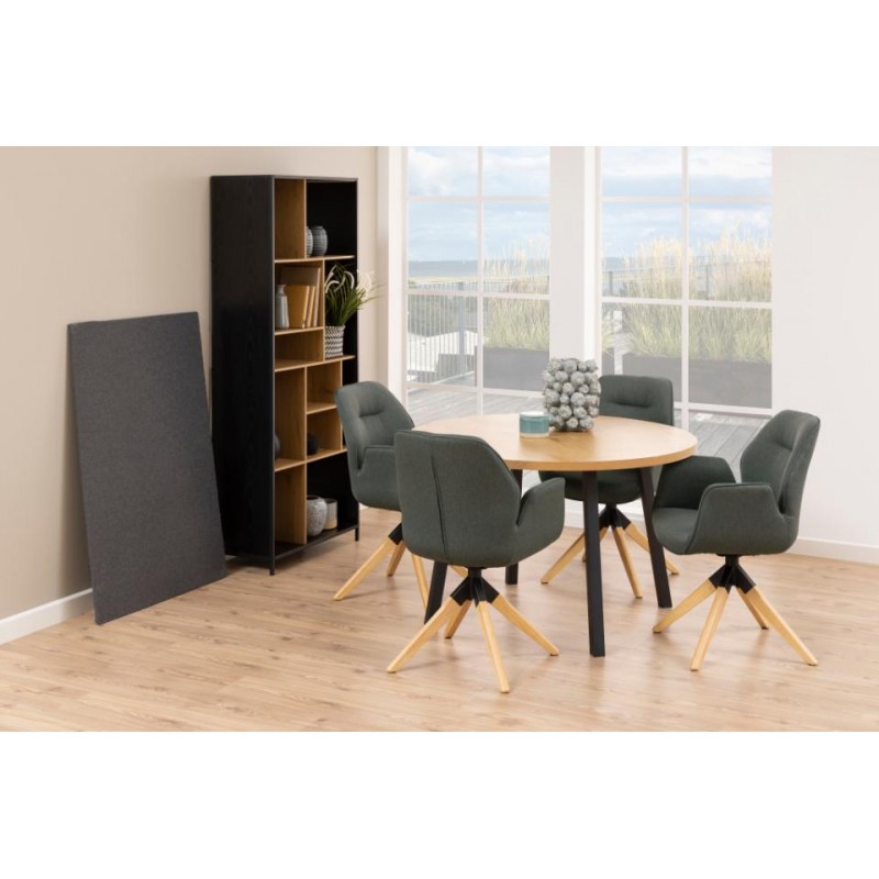 KRZESŁO OBROTOWE ALONSO BEŻOWE Dzięki podłokietnikom skierowanym na zewnątrz, siedzisko tego krzesła do jadalni, idealnie zaokrąglone i ergonomicznie wyprofilowane, łączy elegancję z funkcjonalnością. Poziome, dekoracyjne przeszycia podkreślają jego wyrafinowany charakter, dodając przytulności i stylowego wyrazu. Krzesło osadzone jest na czarnej,...