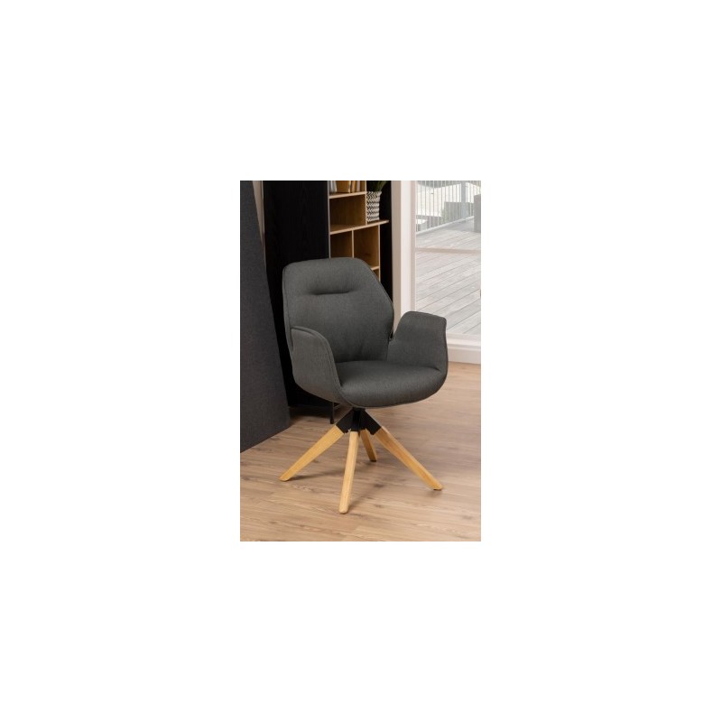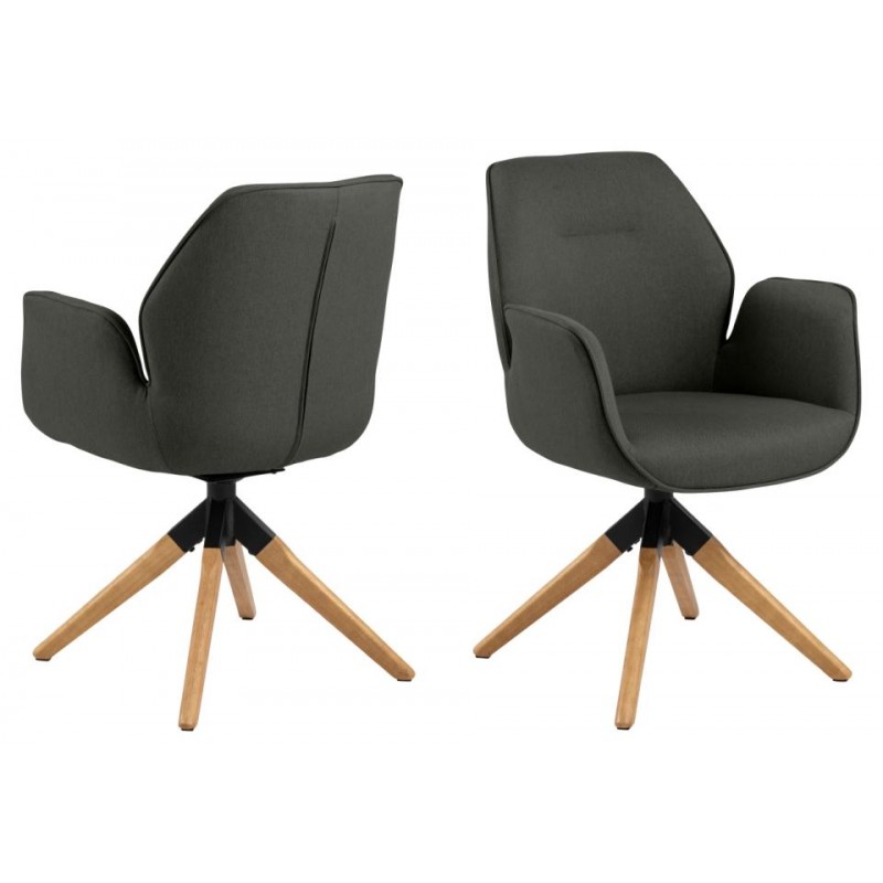 FOTEL OBROTOWY AURA CIEMNOSZARY II Komfortowe krzesło tapicerowane z zaokrąglonymi podłokietnikami wygląda bardzo elegancko i z pewnością sprawdzi się we wnętrzach w stylu skandynawskim. To szare krzesło posiada funkcję auto-return, która umożliwia powrót do pozycji wyjściowej. Krzesło AURA występuje również w odcieniu jasnoszarym.