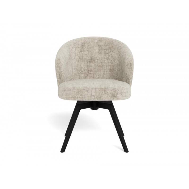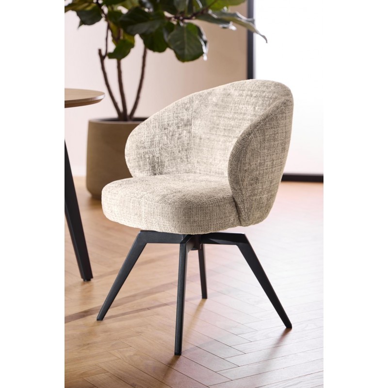 Krzesło do jadalni Darlene to połączenie nowoczesnego designu z wyjątkowym komfortem. Otapicerowane tkaniną Juto w kolorze beżowym, prezentuje się elegancko. Gładkie, zaokrąglone siedzisko oraz czarna, matowa podstawa ze stali malowanej proszkowo tworzą harmonijną całość. Wyposażone w sprężyny kieszeniowe, zapewnia wysoki komfort siedzenia, a funkcja obrotu z automatycznym powrotem ułatwia codzienne użytkowanie. Dodatkowym atutem są ozdobne przeszycia i zdejmowana tapicerka zapinana na zamek błyskawiczny, które podkreślają praktyczny charakter mebla.