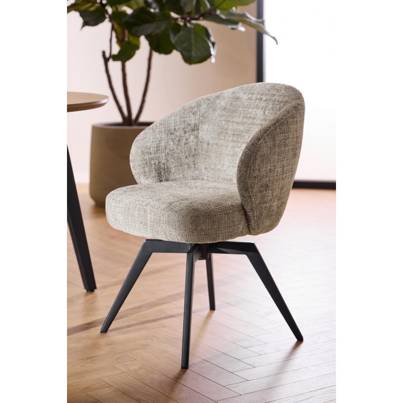 KRZESŁO OBROTOWE DARLENE BEŻOWE DOSTĘPNA OD RĘKI - 1SZTUKA Krzesło do jadalni Darlene to połączenie nowoczesnego designu z wyjątkowym komfortem. Otapicerowane tkaniną Juto w kolorze beżowym, prezentuje się elegancko. Gładkie, zaokrąglone siedzisko oraz czarna, matowa podstawa ze stali malowanej proszkowo tworzą harmonijną całość. Wyposażone w sprężyny...
