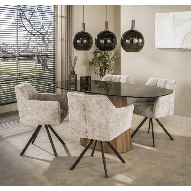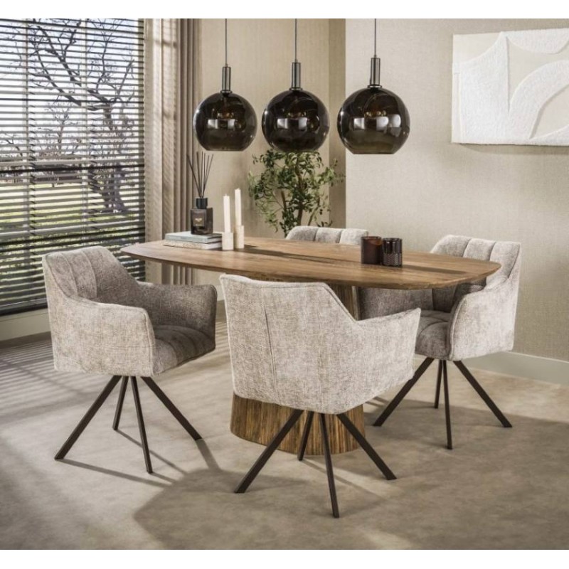 KRZESŁO OBROTOWE ALONSO BEŻOWE Dzięki podłokietnikom skierowanym na zewnątrz, siedzisko tego krzesła do jadalni, idealnie zaokrąglone i ergonomicznie wyprofilowane, łączy elegancję z funkcjonalnością. Poziome, dekoracyjne przeszycia podkreślają jego wyrafinowany charakter, dodając przytulności i stylowego wyrazu. Krzesło osadzone jest na czarnej,...