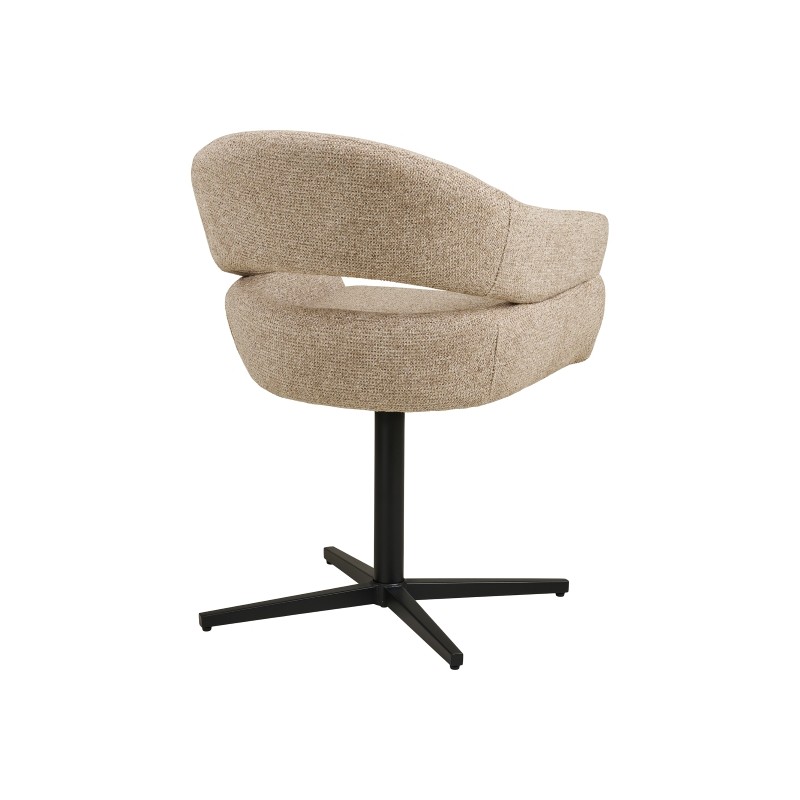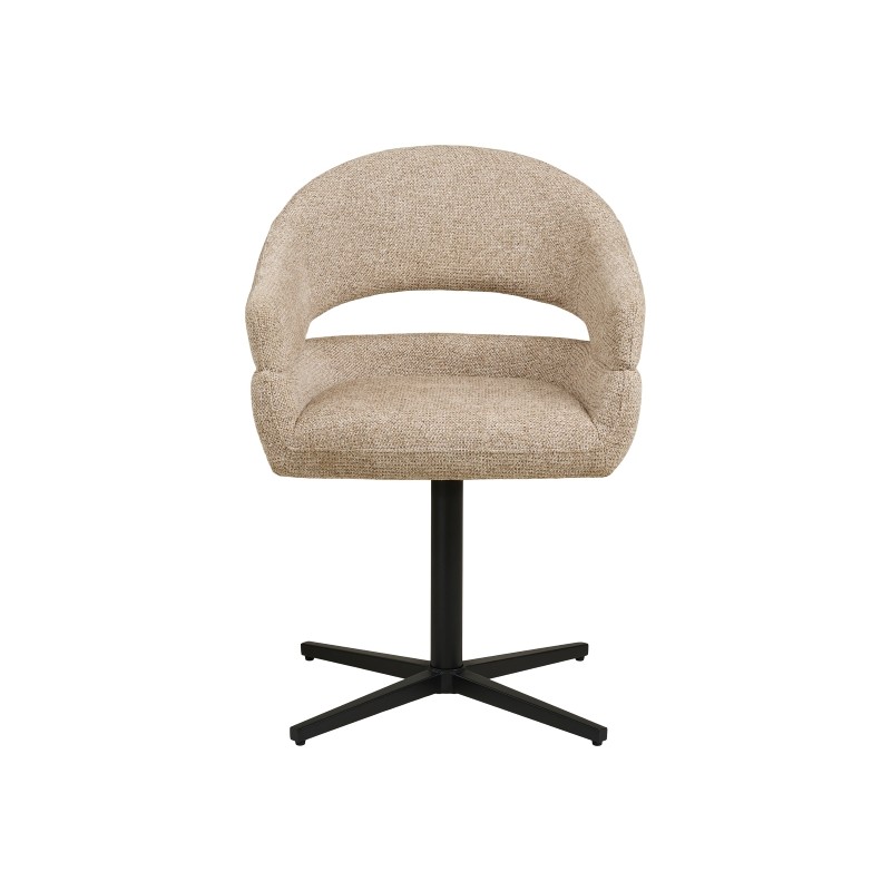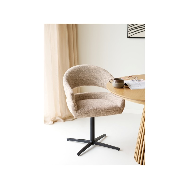 Krzesło osadzone jest na stabilnej, czteroramiennej podstawie, która umożliwia obrót siedziska — to praktyczne rozwiązanie ułatwia swobodne poruszanie się i wstawanie. Uniwersalna kolorystyka i subtelna forma sprawiają, że mebel z łatwością dopasuje się zarówno do nowoczesnych, jak i klasycznych aranżacji jadalni, kuchni czy salonu, wprowadzając do wnętrza lekkość i wysmakowany styl.