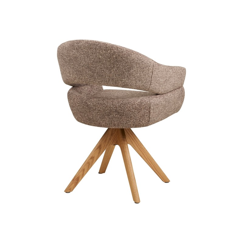 To stylowe krzesło jadalniane z obrotową funkcją 180 stopni łączy nowoczesny, skandynawski design z wygodą użytkowania. Tapicerowane wysokiej jakości tkaniną typu boucle o przyjemnej fakturze siedzisko zapewnia komfortowe i przytulne podparcie podczas posiłków lub spotkań przy stole. Delikatne, miękkie obicie harmonizuje z lekką konstrukcją krzesła, podkreślając jego elegancki charakter.