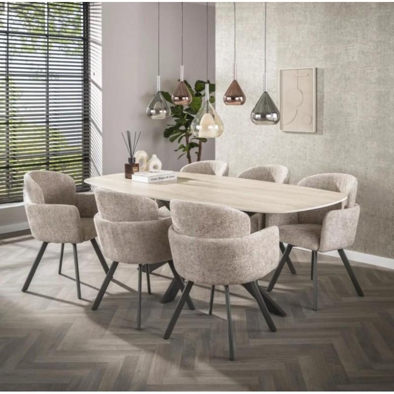 Odkryj nasze krzesło do jadalni Ven - elegancki mebel z bielonego dębu z beżową poduszką siedziska, idealny do stworzenia przyjaznej atmosfery wokół stołu jadalnego. Krzesło Ven zostało zaprojektowane tak, aby łączyć elegancję z wygodą, dzięki czemu jest idealnym wyborem na spotkania rodzinne i przyjaciół na relaksujące kolacje lub przyjemne chwile....