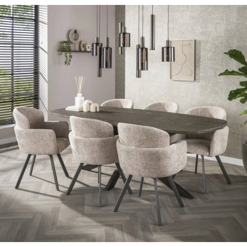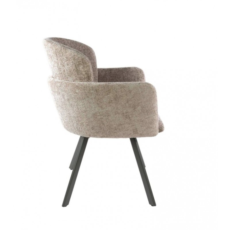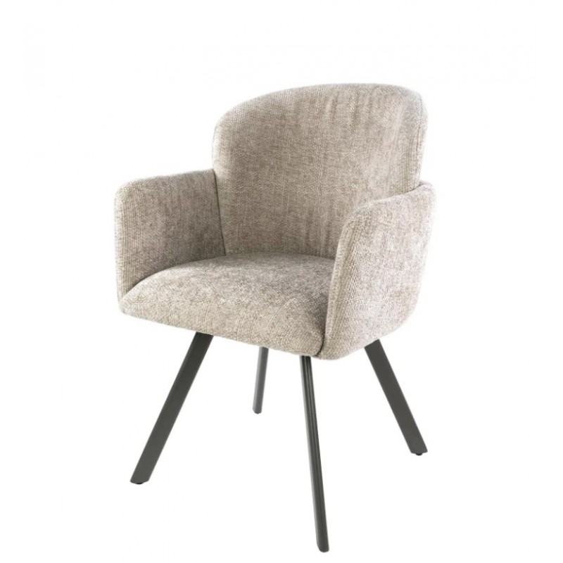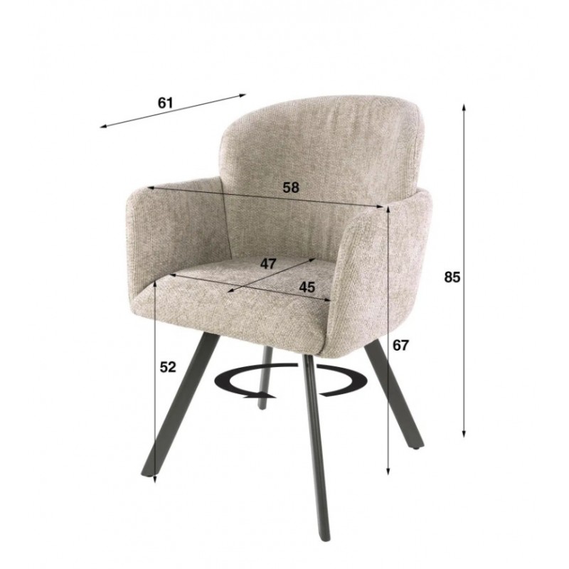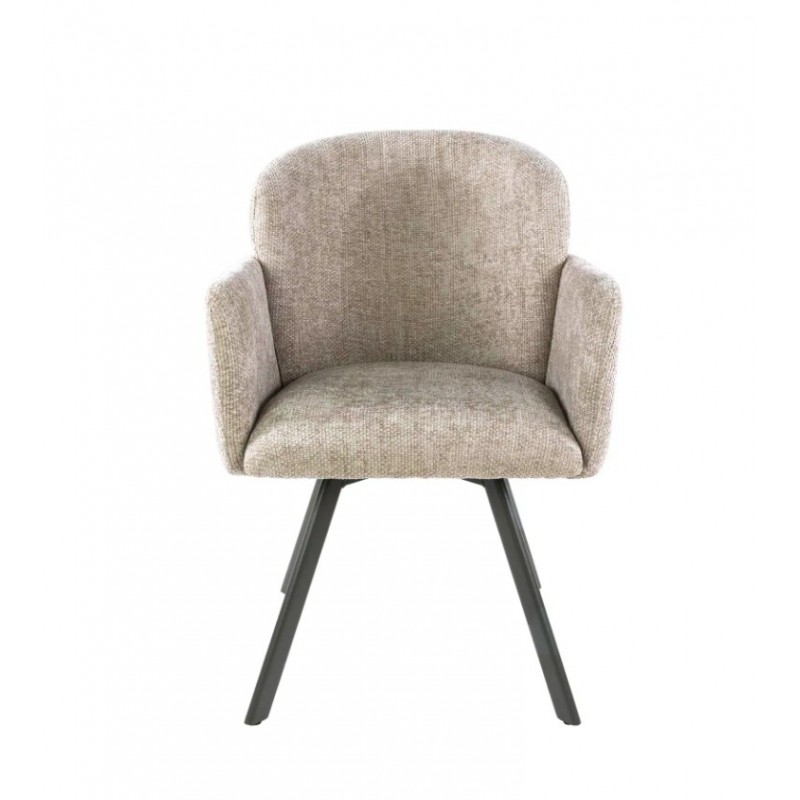 Nowoczesne krzesło DURU to mebel posiadający wiele korzyści w jednym produkcie, który bez wątpienia zachwyci swoim kształtem oraz starannym wykończeniem. Wygodne siedzisko, oparcie oraz podłokietniki utrzymane zostały w beżowej tonacji, która idealnie współgra z obrotową ciemną metalową podstawą. Dodatkowym atutem tego krzesła bez wątpienia zarówno zastosowanie w nim sprężyn kieszeniowych typu pocket jego stylowy wygląd oraz zaokrąglone kształty, które od razu podkreślają jego wyjątkowy charakter. Mebel ten posiada doskonale wyprofilowane oparcie oraz siedzisko zaprojektowane w taki sposób aby odpowiednio wspierało sylwetkę siedzącego. Ponadto charakterystyczną jego cechą jest zastosowanie bardzo modnych i zarazem oryginalnych krzywizn na oparciu oraz podłokietnikach, dzięki czemu efekt końcowy połączenia beżowego korpusu siedziska wraz z metalowa podstawą jest fenomenalny nadając całości niezwykle wyjątkowy design. Mebel ten wyróżnia się przede wszystkim swoją oryginalną formą oraz bardzo ciekawym wyglądem dzięki zastosowaniu na nim modnej strukturalnej tkaniny w kolorze beżowym o gramaturze plecionej. Takie połączenie kolorów to kompozycja, która idealnie sprawdzi się w jadalni oraz salonie urządzonych zarówno w stylu industrialnym jak również nowoczesnym dodając przestrzeni niezwykle oryginalnego charakteru.