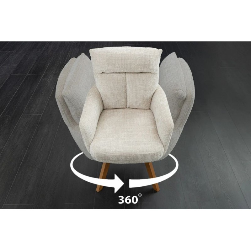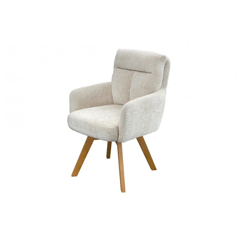 Nowoczesne krzesło BIG GEORGE w wersji z designerskim oparciem oraz siedziskiem posiada wiele korzyści w jednym produkcie, które bez wątpienia zachwyci swoim starannym wykończeniem. Wygodne zaokrąglone siedzisko utrzymane w beżowej tonacji idealnie współgra z obrotową drewnianą podstawą. Dzięki zastosowaniu w wewnątrz ozdobnych dekoracyjnych poziomych oraz pionowych przeszyć sprawia, że całość nabiera niezwykłej elegancji. Mebel ten wyróżnia się przede wszystkim swoją oryginalną formą oraz bardzo ciekawym wyglądem, dzięki zastosowaniu na nim modnej tkaniny szelinowej w kolorze beżowym. Jego oparcie jest równie ważnym elementem mebla, ponieważ jest perfekcyjnie wyprofilowane aby wesprzeć i odciążyć siedzącą sylwetkę podczas jego użytkowania, a obrotowa podstawa poprawia komfort siedzenia przy blacie. Krzesło to poza swoją funkcjonalnością doda wnętrzu stylu sprawiając, że pomieszczenie od razu nabiera nowoczesnego charakteru. Modny beżowy kolor wraz z naturalnym kolorem podstawy to kompozycja, która idealnie sprawdzi się we wnętrzach urządzonych w stylu nowoczesnym dodając przestrzeni niezwykle oryginalnego charakteru.