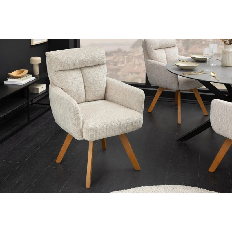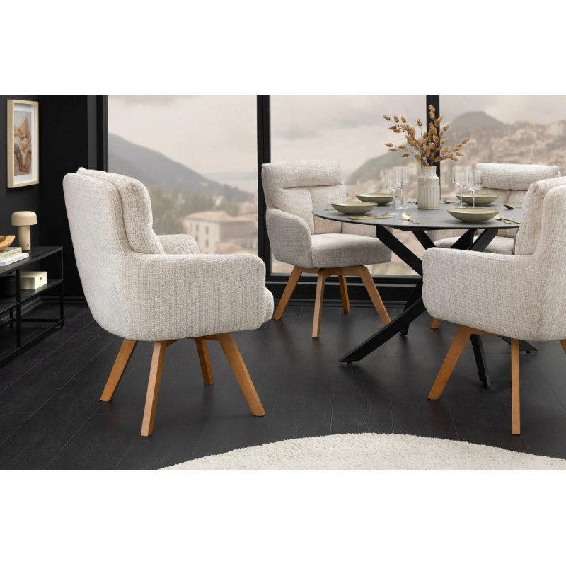 Odkryj nasze krzesło do jadalni Ven - elegancki mebel z bielonego dębu z beżową poduszką siedziska, idealny do stworzenia przyjaznej atmosfery wokół stołu jadalnego. Krzesło Ven zostało zaprojektowane tak, aby łączyć elegancję z wygodą, dzięki czemu jest idealnym wyborem na spotkania rodzinne i przyjaciół na relaksujące kolacje lub przyjemne chwile....