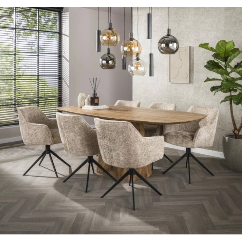 KRZESŁO OBROTOWE ALONSO BEŻOWE Dzięki podłokietnikom skierowanym na zewnątrz, siedzisko tego krzesła do jadalni, idealnie zaokrąglone i ergonomicznie wyprofilowane, łączy elegancję z funkcjonalnością. Poziome, dekoracyjne przeszycia podkreślają jego wyrafinowany charakter, dodając przytulności i stylowego wyrazu. Krzesło osadzone jest na czarnej,...