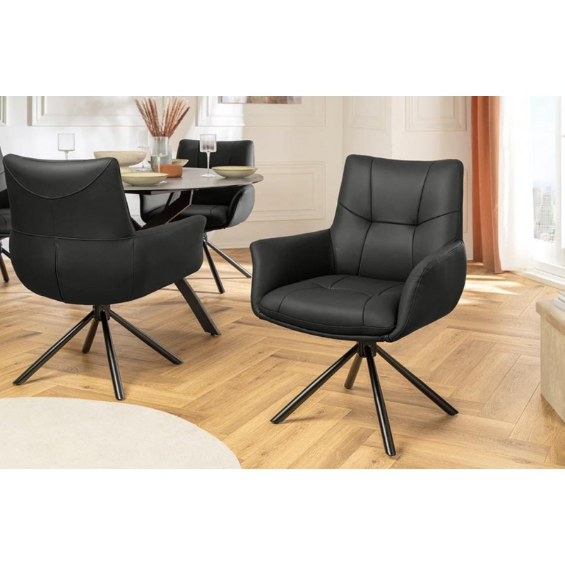 Krzesło do jadalni z serii Art to fotel w industrialnym, w pełni udekorowanym designie, z rustykalnym podwoziem i zintegrowanym podłokietnikiem z czarnego metalu malowanego proszkowo. Szerokie oparcie i siedzisko dla dodatkowego komfortu z czarnej sztucznej skóry z ozdobnymi przeszyciami po wewnętrznej stronie oparcie i siedzisko w ładny wzór. Wymagany...