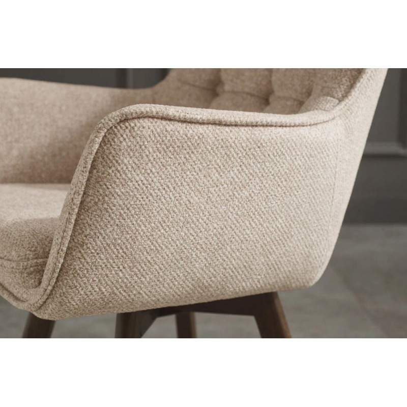 KRZESŁO OBROTOWE ALONSO BEŻOWE Komfortowe krzesło z funkcją obracania, obite tkaniną w kolorze beżowym zostało stworzone z myślą o użytkownikach ceniących sobie funkcjonalność oraz stylowe wykończenie. Dzięki podłokietnikom skierowanym na zewnątrz to krzesło do jadalni przypomina rozkwitającego tulipana. Wygodne siedzisko ma sprężyny kieszeniowe,. Ten...