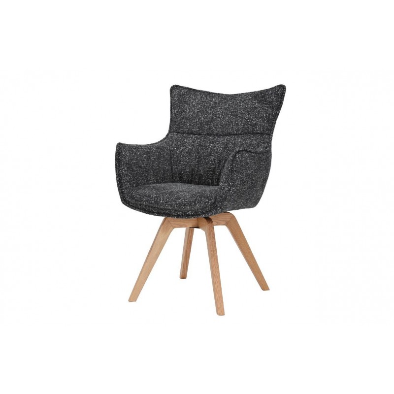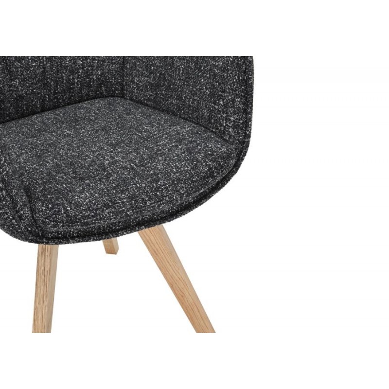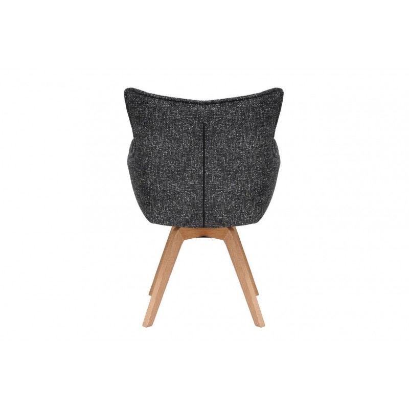 Nowoczesne krzesło VOGUE z designerskim oparciem i siedziskiem to połączenie wielu zalet w jednym produkcie, który z pewnością zachwyci dopracowanym wykończeniem. Komfortowe, zaokrąglone siedzisko w kolorze antracytu idealnie współgra z drewnianą podstawą, tworząc spójną i elegancką całość. Mebel ten wyróżnia się nie tylko swoją oryginalną formą, ale również bardzo ciekawym wyglądem, dzięki zastosowaniu na nim dekoracyjnych przeszyć oraz modnej teksturowanej tkaniny, której wyjątkowy charakter podkreśla gramatura strukturalnej tapicerki. Oparcie krzesła zostało starannie wyprofilowane, aby zapewnić ergonomiczne podparcie pleców i odciążyć sylwetkę podczas siedzenia, natomiast obrotowa podstawa zwiększa wygodę użytkowania, zwłaszcza przy stole czy biurku. Krzesło VOGUE to nie tylko funkcjonalny mebel, ale także stylowy akcent wnętrza, który wprowadza nowoczesny klimat. Połączenie modnego koloru w odcieniach szarości z naturalnym drewnem doskonale sprawdza się w nowoczesnych aranżacjach, dodając przestrzeni elegancji i oryginalnego charakteru.