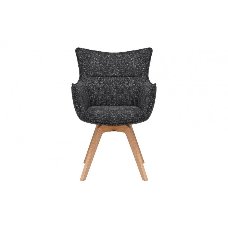 KRZESŁO OBROTOWE GRAHAM CIEMNOSZARE Dostępne od ręki - 1 sztuka To krzesło do jadalni o eleganckiej i wyrafinowanej sylwetce przyciąga uwagę i podkreśla charakter wnętrza. Siedzisko otapicerowane zostało ciemnoszarą, teksturowaną tkaniną plecioną z subtelnym, dekoracyjnym wycięciem na oparciu, łączącym komfort z nowoczesnym designem. Krzesło osadzono na...