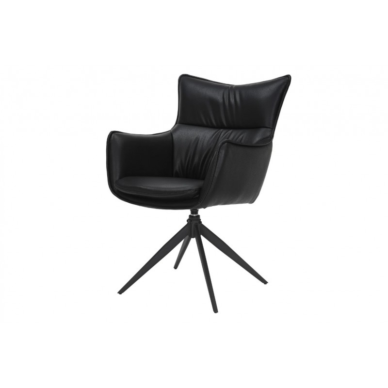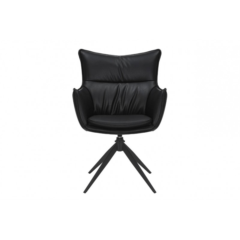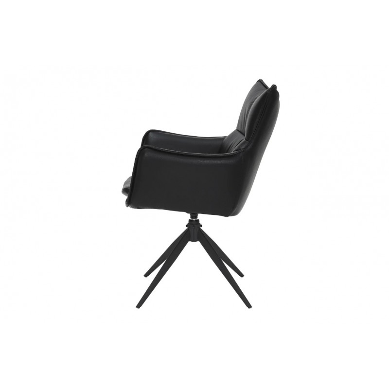Krzesło do jadalni Slim ma wysokie oparcie w pełni nowoczesnym wzornictwie. Oparcie i siedzisko z czarnej sztucznej skóry z ozdobnymi szwami po wewnętrznej stronie oparcia i siedziska, które tworzą wzór w paski, z wyściółką. Nogi są z czarnego metalu malowanego proszkowo. Tutaj Ty i Twoi goście możecie wygodnie siedzieć godzinami! Wymagany jest montaż....