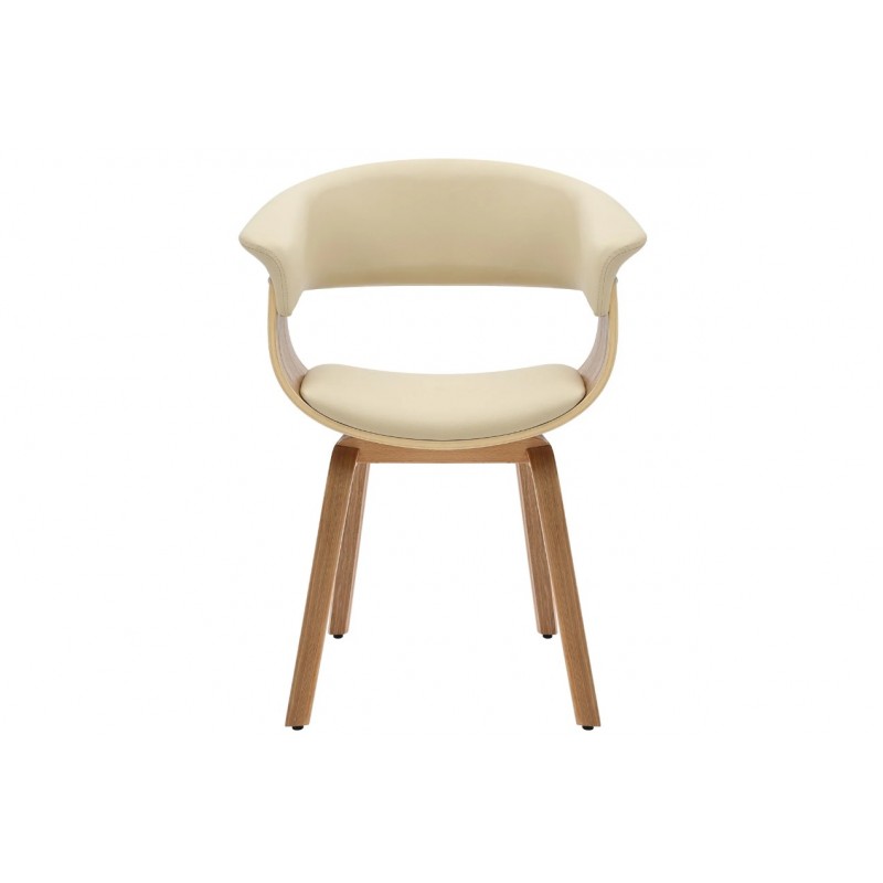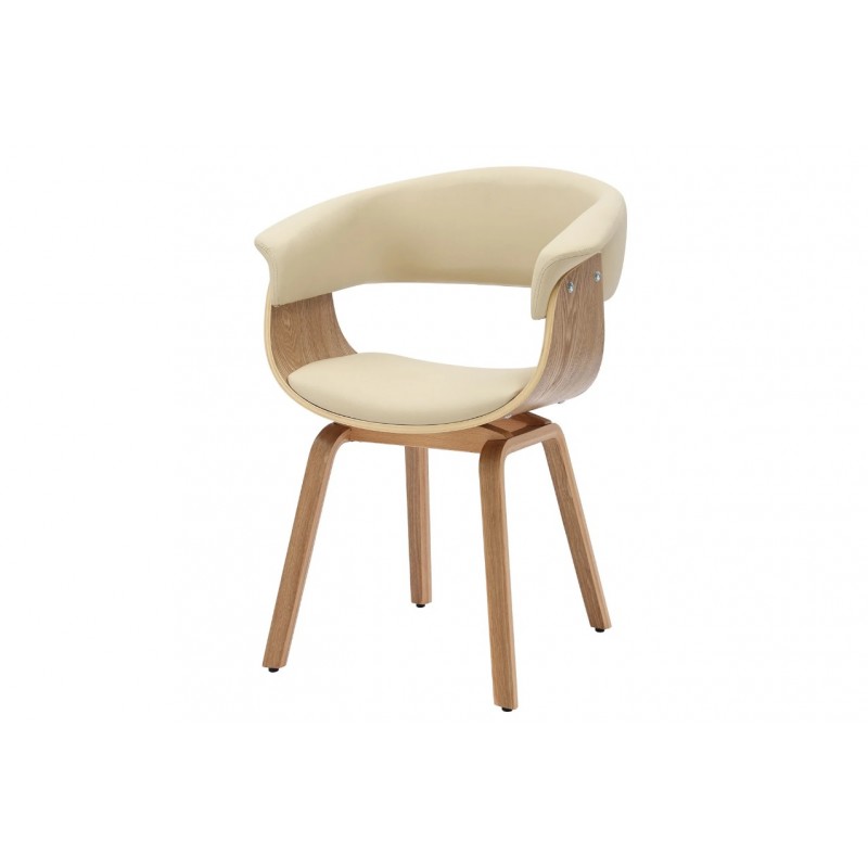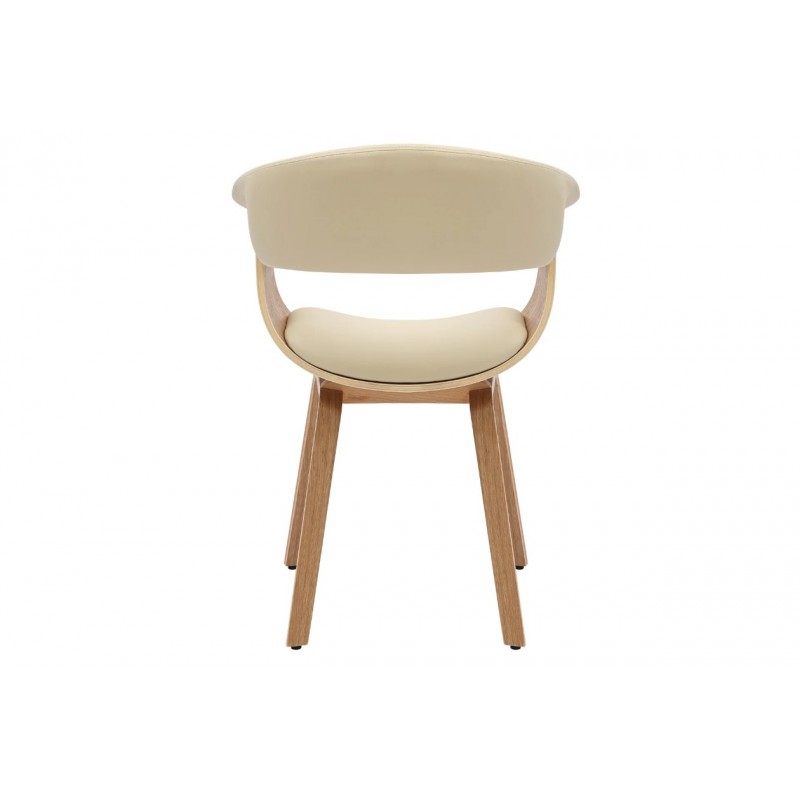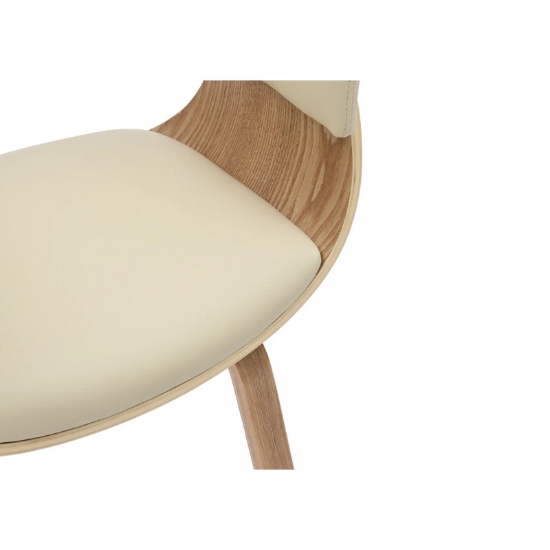 Krzesło ORGANIC to bardzo stylowa zarazem nowoczesna propozycja dopełnienia jadalni oraz salonu. Zaokrąglone krawędzie siedziska wraz z dekoracyjnym wycięciem, stanowi fornirowany korpus z drewna dębowego, który eksponuje swoje usłojenie podkreślając jednocześnie naturalność drewna. Siedzisko oraz oparcie zostało wykonane z ekoskóry w beżowo-kremowym kolorze. Bez wątpienia wyprofilowany kształt, oryginalne krzywizny oraz siedzisko w połączeniu z drewnianą fornirowaną podstawą nadają mu wyjątkowy design. Krzesło to stworzone zostało głównie z myślą o użytkownikach ceniących sobie funkcjonalność i stylowe wykończenie. Komfort oraz wygodę na długi czas zapewnia idealnie wyprofilowana całość korpusu, wspierająca odpowiednio sylwetkę siedzącego podczas jego użytkowania. ORGANIC to nie tylko funkcjonalny mebel, ale także wyjątkowy element dekoracyjny, który nada Twojej przestrzeni wyjątkowego charakteru odnajdując się idealnie w stylu retro oraz klasycznym.