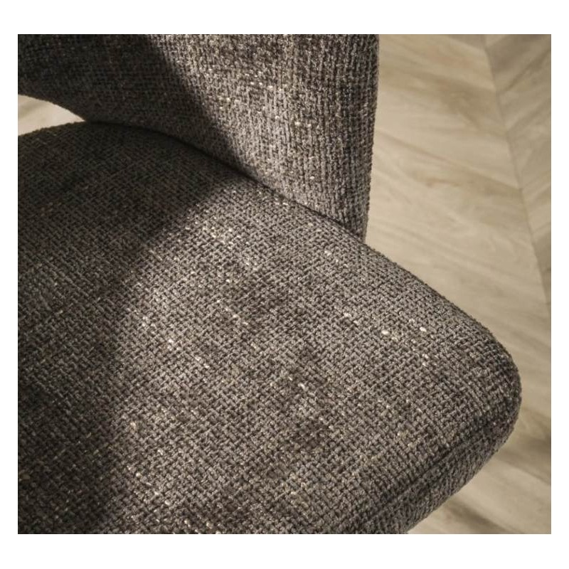 KRZESŁO OBROTOWE GRAHAM CIEMNOSZARE Dostępne od ręki - 7 sztuk To krzesło do jadalni o eleganckiej i wyrafinowanej sylwetce przyciąga uwagę i podkreśla charakter wnętrza. Siedzisko otapicerowane zostało ciemnoszarą, teksturowaną tkaniną plecioną z subtelnym, dekoracyjnym wycięciem na oparciu, łączącym komfort z nowoczesnym designem. Krzesło osadzono na...