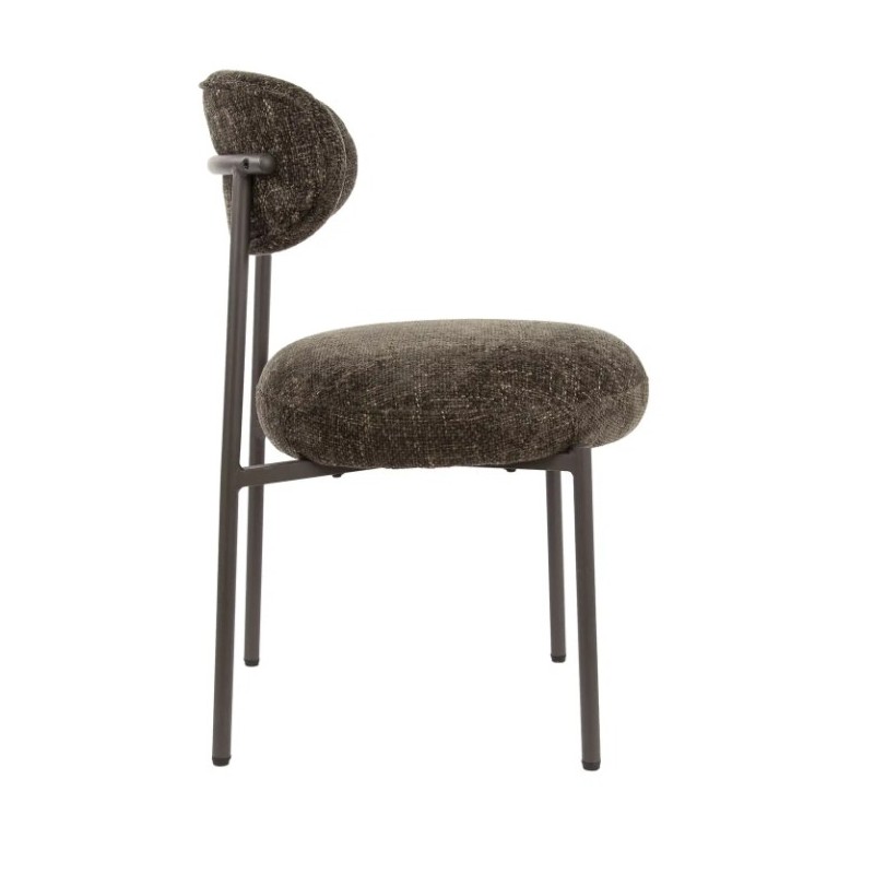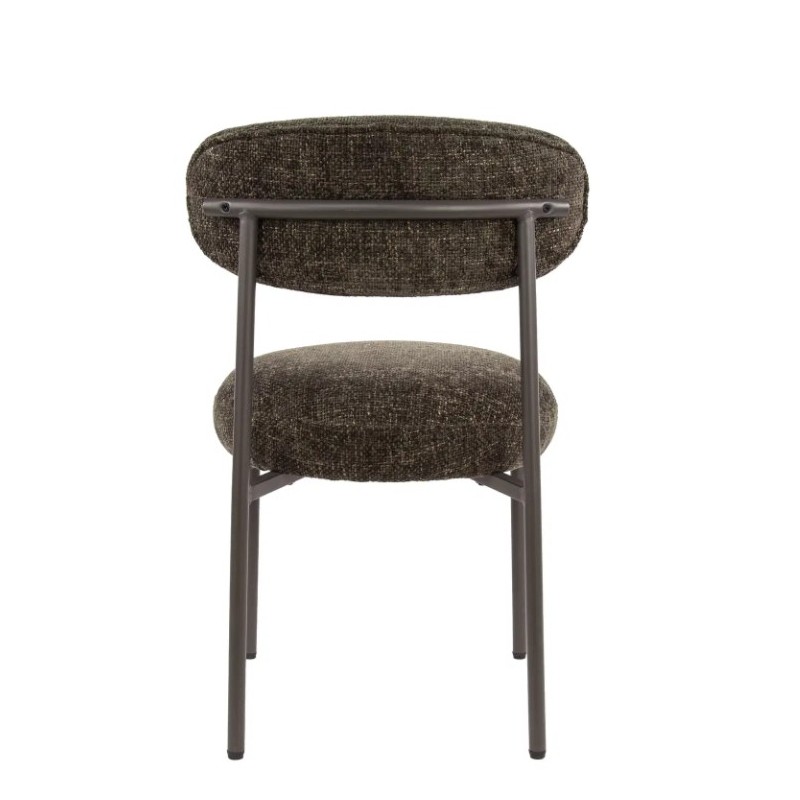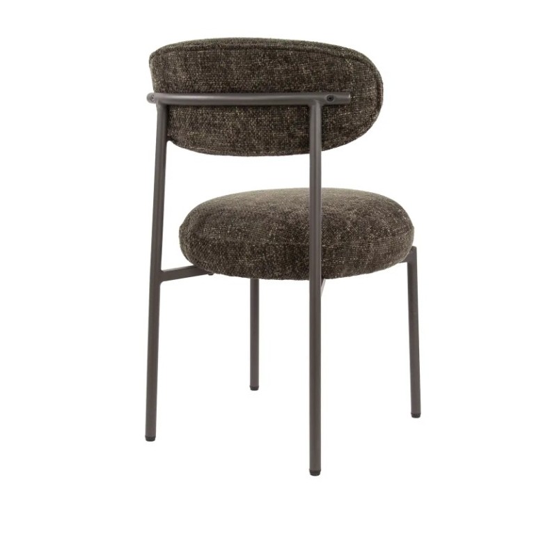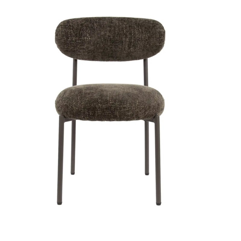 Nowoczesne krzesło ROY to połączenie prostoty z funkcjonalnością. Już na pierwszy rzut oka zachwyca swoją formą i precyzyjnym wykończeniem. Komfortowe siedzisko oraz oparcie utrzymano w eleganckim odcieniu brązu, które doskonale komponuje się ze smukłą, ciemną metalową podstawą, tworząc spójną, estetyczną całość. Mebel ten wyróżnia się nie tylko wyglądem, ale również idealnie wyprofilowanym oparciem oraz siedziskiem, które zostały zaprojektowane tak, aby dopasowywać się do sylwetki użytkownika, zapewniając wygodę oraz komfort podczas jego użytkowania. Dodatkowego uroku dodaje modna, pleciona tkanina w brązowym odcieniu, której struktura nadaje meblowi głębi i oryginalności. To właśnie ten detal czyni każdy egzemplarz niepowtarzalnym. Krzesło ROY bez wątpienia doskonale odnajdzie się zarówno w klasycznych, jak i nowoczesnych aranżacjach jadalni czy salonu, dodając przestrzeni elegancji i wyrazistego stylu.