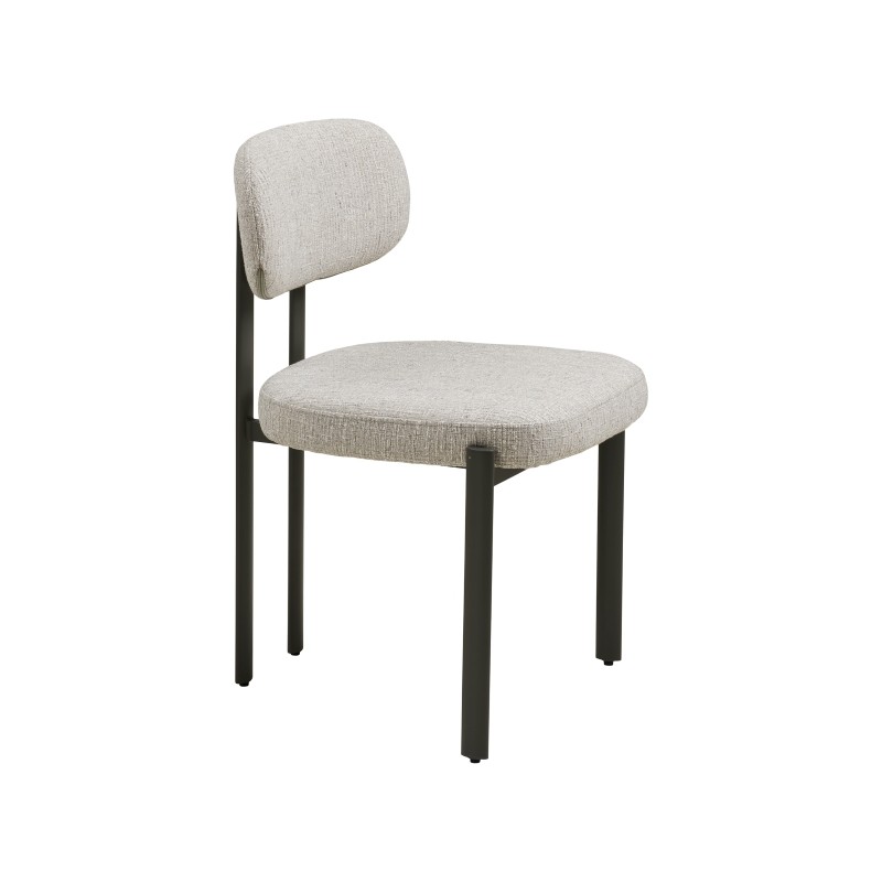 Nowoczesne krzesło Royan w odcieniu eleganckiej szarości to połączenie stylu, komfortu i funkcjonalności. Doskonale sprawdzi się zarówno w jadalni jak i w salonie.Siedzisko i oparcie zostały wykonane z miękkiej tkaniny, która jest przyjemna w dotyku i łatwa w utrzymaniu czystości. Delikatne przeszycia nadają całości subtelnego charakteru, a profilowane oparcie zapewnia wygodę nawet podczas długiego siedzenia.Stelaż z malowanej proszkowo stali dodaje konstrukcji stabilności i nowoczesnego wyglądu, jednocześnie idealnie kontrastując z szarością tapicerki.