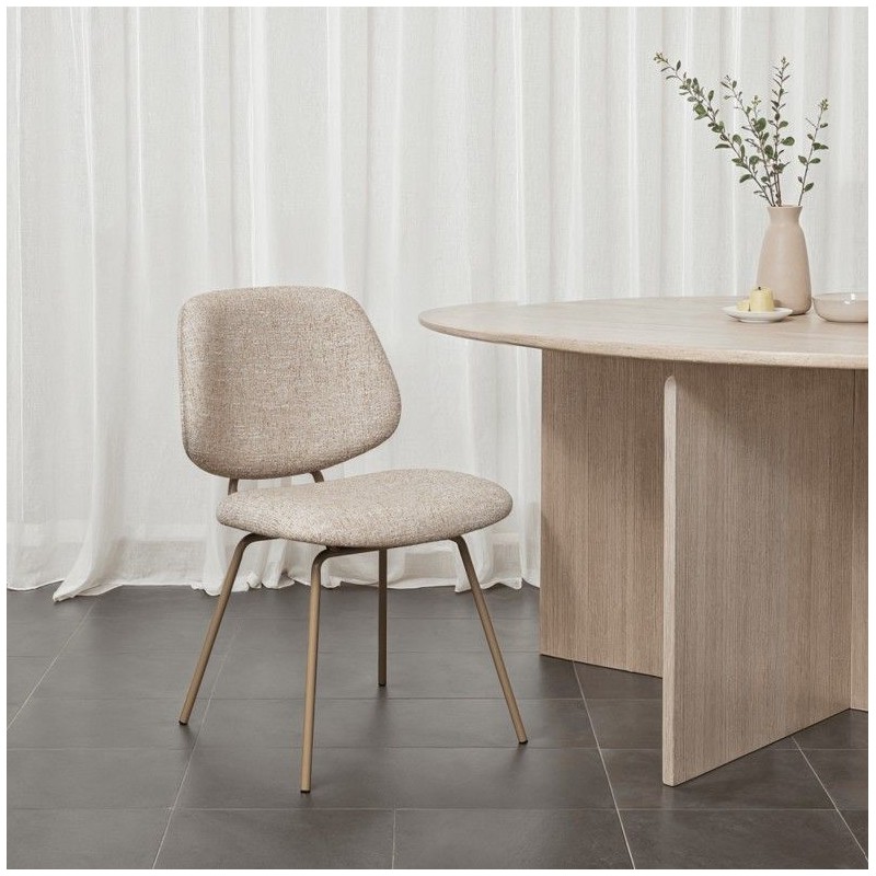 Krzesło SOFIA to propozycja dla tych, którzy chcą nadać swojemu wnętrzu trochę prostoty oraz funkcjonalności. Wysokie siedzisko obite zostało modną tkaniną w odcieniach beżu, którego wyjątkowy charakter podkreśla bez wątpienia gramatura zastosowanej na nim tkaniny Boucle. Jego niezwykły komfort na długi czas zapewnia idealnie wyprofilowane oparcie oraz siedzisko, które wspiera odpowiednio sylwetkę siedzącego podczas jego użytkowania. Jego stabilną metalową beżową podstawę stanowią smukłe nogi, które dopełniają w całości jego wyjątkowy wygląd. Krzesło to stworzone zostało głównie z myślą o użytkownikach ceniących sobie funkcjonalność oraz stylowe wykończenie. Efekt końcowy połączenia beżowego koloru siedziska oraz metalowej beżowej podstawy jest jednolity, dzięki czemu idealnie odnajdzie się w stylu nowoczesnym oraz klasycznym. Krzesło SOFIA swoja prostą formą oraz niezwykłą elegancją bez wątpienia uzupełni Twoje przestronne wnętrze jadalni jak i salonu pozwalając się cieszyć relaksem każdego dnia.