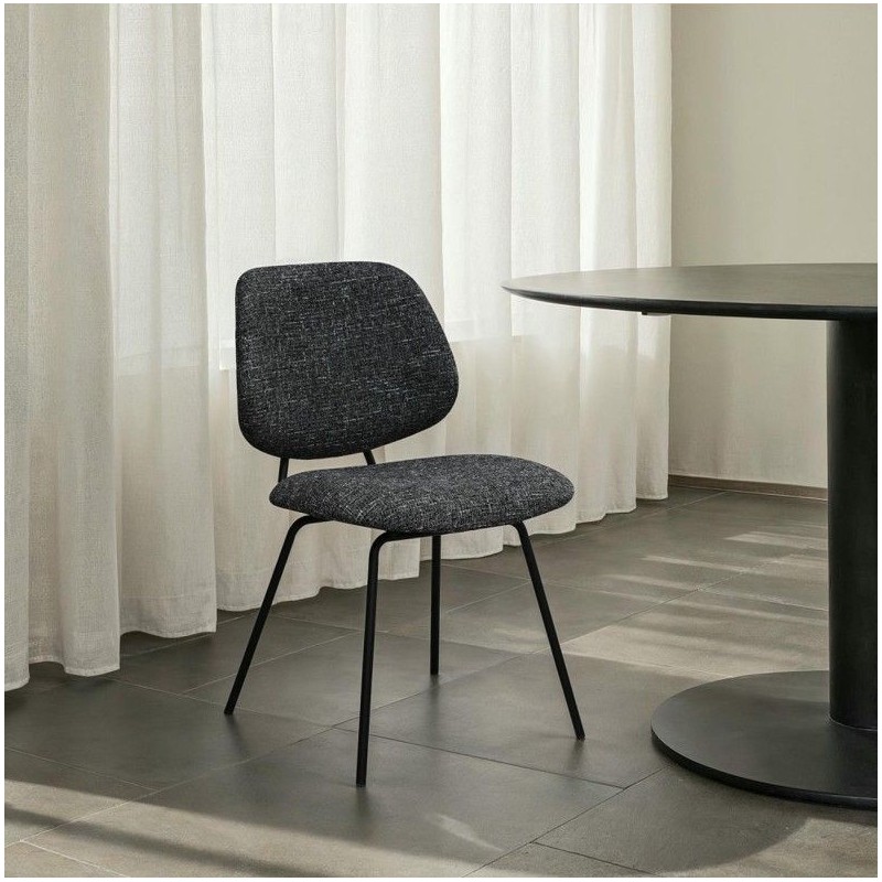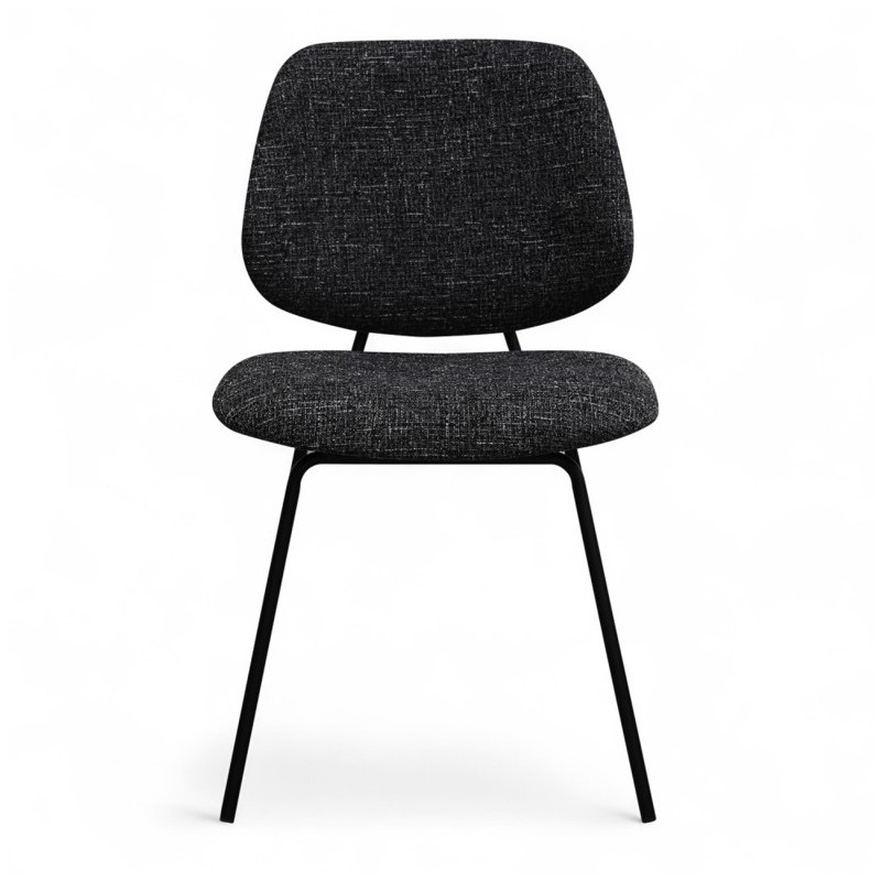 Krzesło SOFIA to propozycja dla tych, którzy chcą nadać swojemu wnętrzu trochę prostoty oraz funkcjonalności. Wysokie siedzisko obite zostało modną tkaniną w odcieniach czerni, którego wyjątkowy charakter podkreśla bez wątpienia gramatura zastosowanej na nim tkaniny Boucle. Jego niezwykły komfort na długi czas zapewnia idealnie wyprofilowane oparcie oraz siedzisko, które wspiera odpowiednio sylwetkę siedzącego podczas jego użytkowania. Jego stabilną metalową czarną podstawę stanowią smukłe nogi, które dopełniają w całości jego wyjątkowy wygląd. Krzesło to stworzone zostało głównie z myślą o użytkownikach ceniących sobie funkcjonalność oraz stylowe wykończenie. Efekt końcowy połączenia czarnego koloru siedziska oraz metalowej czarnej podstawy jest jednolity, dzięki czemu idealnie odnajdzie się w stylu nowoczesnym oraz klasycznym. Krzesło SOFIA swoja prostą formą oraz niezwykłą elegancją bez wątpienia uzupełni Twoje przestronne wnętrze jadalni jak i salonu pozwalając się cieszyć relaksem każdego dnia.