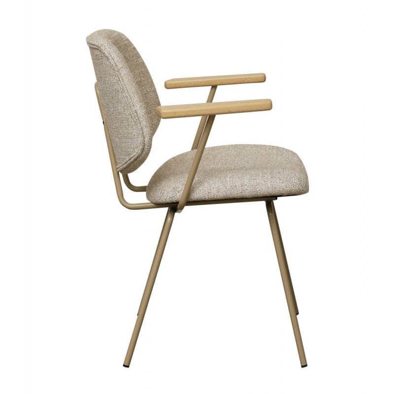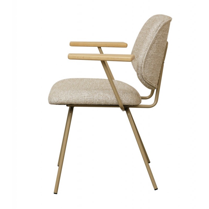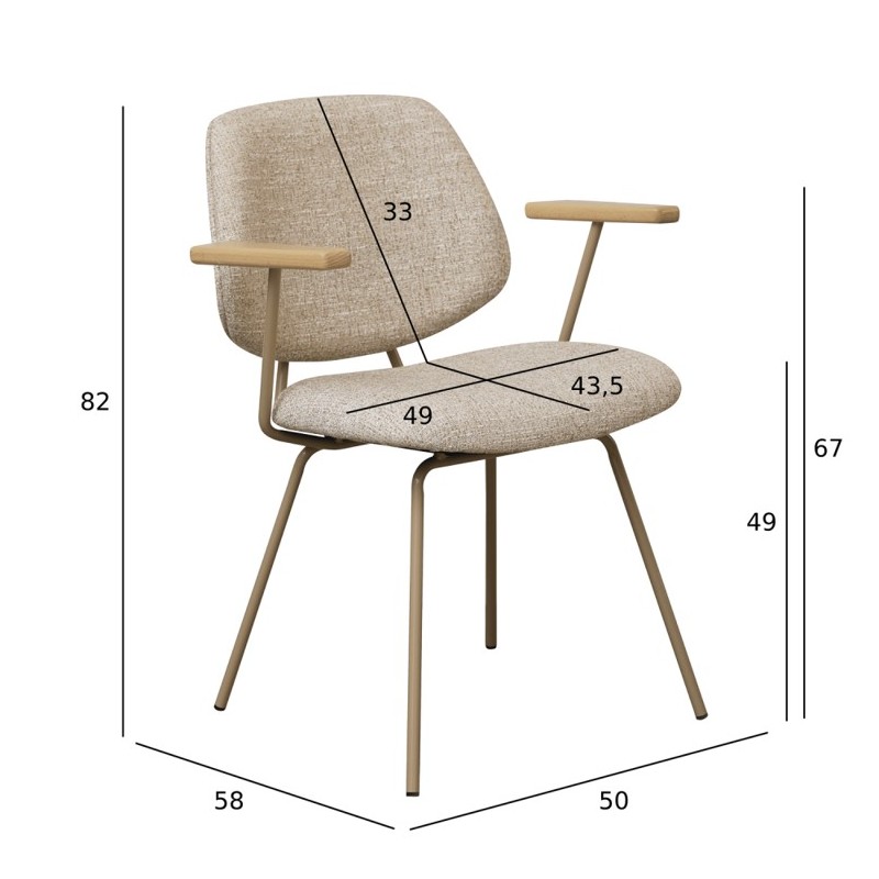 Krzesło SOFIA to propozycja dla tych, którzy chcą nadać swojemu wnętrzu trochę prostoty oraz funkcjonalności. Wysokie siedzisko obite zostało modną tkaniną w odcieniach beżu, którego wyjątkowy charakter podkreśla bez wątpienia gramatura zastosowanej na nim tkaniny Boucle. Jego niezwykły komfort na długi czas zapewnia idealnie wyprofilowane oparcie oraz siedzisko, które wspiera odpowiednio sylwetkę siedzącego podczas jego użytkowania. Jego stabilną metalową beżową podstawę stanowią zarówno podłokietniki zapewniające dodatkowe wsparcie i wygodę jak i smukłe nogi, które dopełniają w całości jego wyjątkowy wygląd. Krzesło to stworzone zostało głównie z myślą o użytkownikach ceniących sobie funkcjonalność oraz stylowe wykończenie. Efekt końcowy połączenia beżowego koloru siedziska oraz metalowej beżowej podstawy jest jednolity, dzięki czemu idealnie odnajdzie się w stylu nowoczesnym oraz klasycznym. Krzesło SOFIA swoja prostą formą oraz niezwykłą elegancją bez wątpienia uzupełni Twoje przestronne wnętrze jadalni jak i salonu pozwalając się cieszyć relaksem każdego dnia.