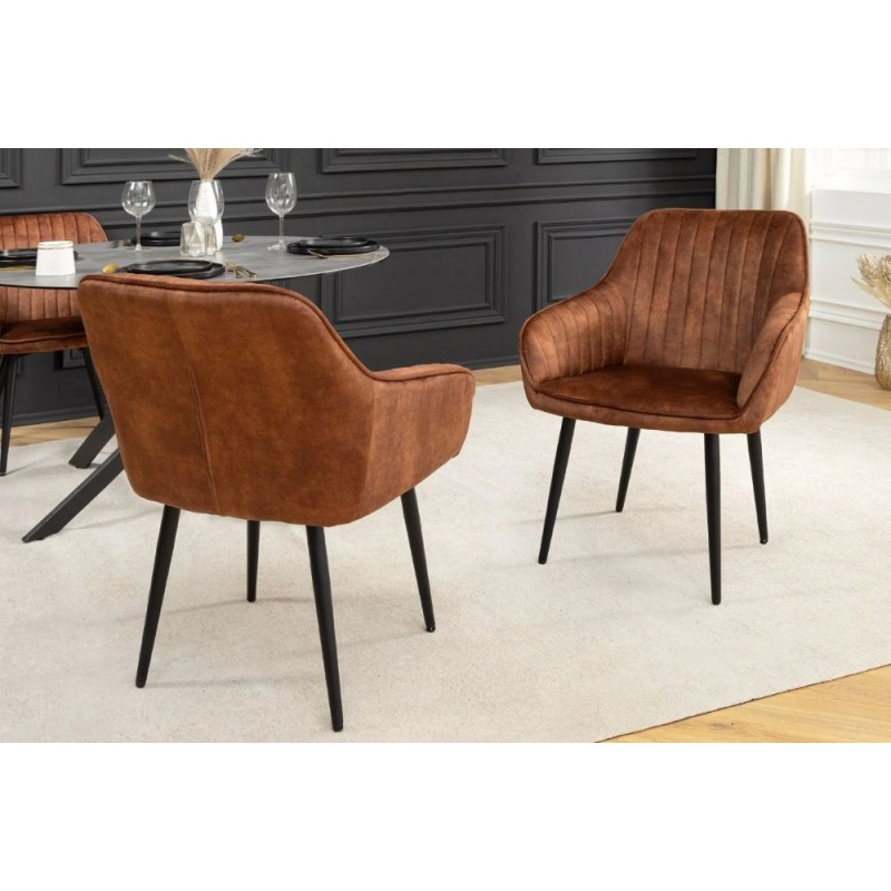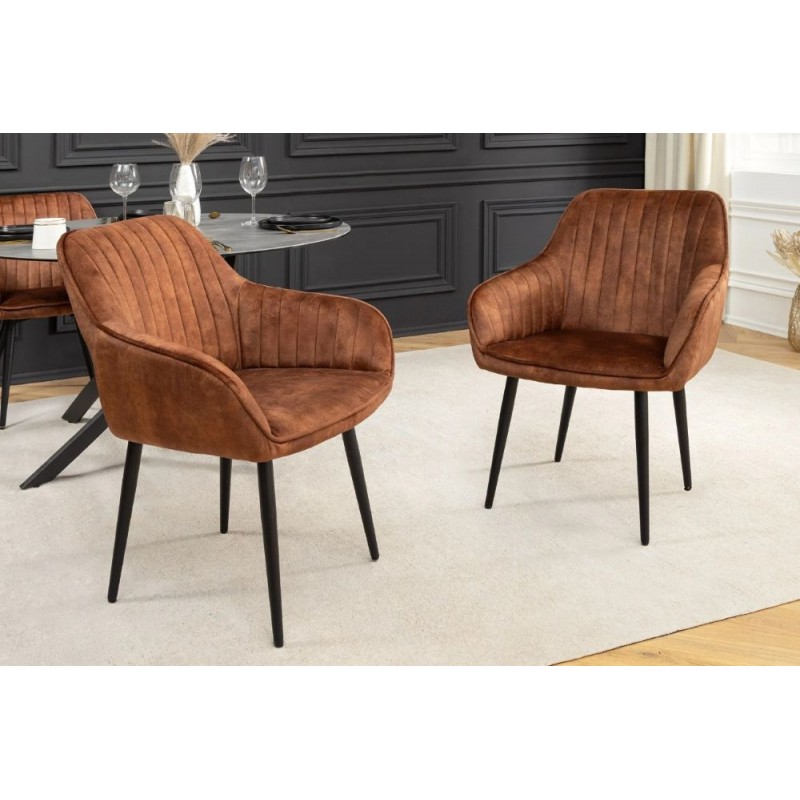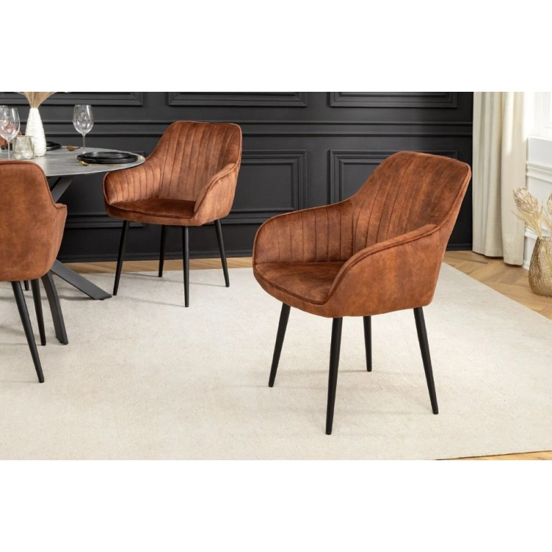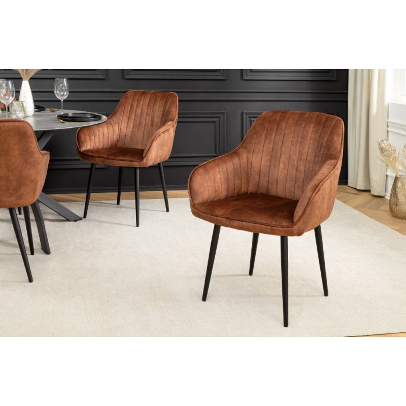 TURIN to stylowy mebel pasujący do każdego wnętrza w stylu nowoczesnym, gdzie krzesło to dzięki swojej budowie i strukturze doda wnętrzu charakteru oraz wyrazistości. Podstawę mebla stanowi smukła konstrukcja stworzona z czterech metalowych nóg w kolorze czarnym. Zastosowane dekoracyjne ozdobne przeszycia w jego wnętrzu sprawiają, że całość nabiera niezwykłej elegancji. Wyróżnia się przede wszystkim swoją oryginalną formą oraz bardzo ciekawym wyglądem dzięki zastosowaniu na nim modnej aksamitnej tkaniny w kolorze brązowym. Mebel ten posiada doskonale wyprofilowane oparcie oraz siedzisko zaprojektowane w taki sposób aby odpowiednio wspierało sylwetkę siedzącego. Krzesło to poza swoją funkcjonalnością dodaje wnętrzu stylu, a modne odcienie brązu i uniwersalny czarny kolor podstawy to kompozycja, która idealnie sprawdza się we wnętrzach urządzonych w stylu nowoczesnym oraz retro dodając przestrzeni niezwykle oryginalnego charakteru.