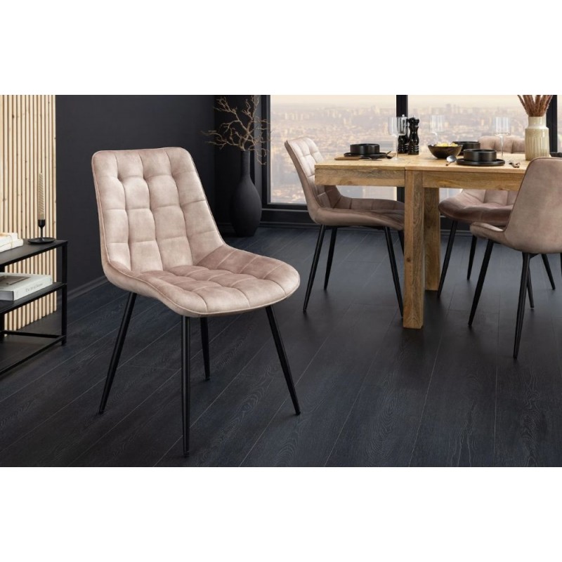 Krzesło ROADSTAR to propozycja dla tych, którzy chcą nadać swojemu wnętrzu trochę prostoty oraz elegancji. Głównym elementem mebla jest jego wysokie siedzisko obite modnym aksamitnym materiałem w kolorze beżowym. Podstawa została wykonana z czterech smukłych stabilnych metalowych nóg w kolorze czarnym, która idealnie komponuje się z korpusem mebla sprawiając, że całość prezentuje się zjawiskowo. Dodatkowym jego atutem bez wątpienia są pionowe oraz poziome przeszycia w wewnątrz siedziska, które podkreślają jego wyjątkowość. Krzesło to stworzone zostało przede wszystkim z myślą o użytkownikach ceniących sobie funkcjonalność oraz stylowe wykończenie. Mebel ten znakomicie uzupełni każde przestronne wnętrze pozwalając się cieszyć relaksem każdego dnia. Niezwykły komfort krzesła zapewnia odpowiednio wyprofilowane oparcie, które wspiera sylwetkę siedzącego podczas jego użytkowania. ROADSTAR sprawdzi się idealnie w każdym salonie oraz jadalni urządzonej w stylu retro oraz nowoczesnym dodając przy tym przestrzeni niezwykle oryginalnego charakteru.
