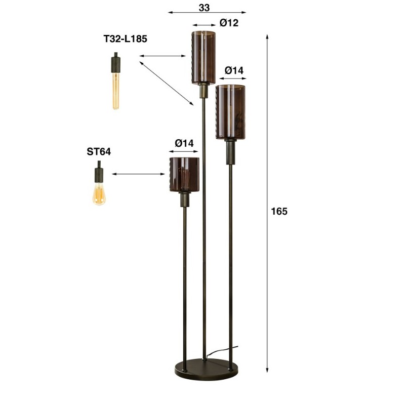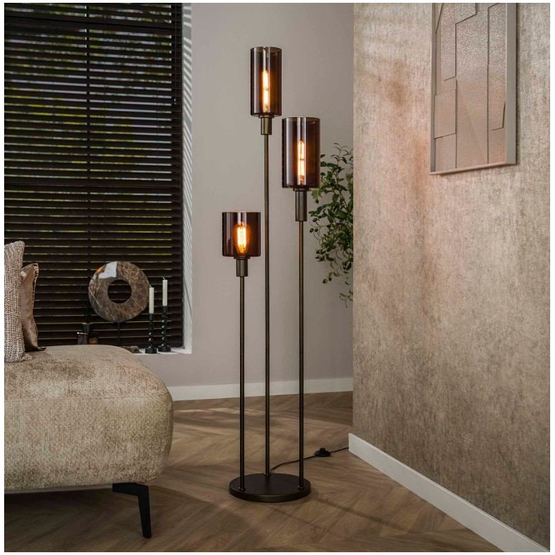 Lampa podłogowa HOLY to idealne rozwiązanie do każdego pomieszczenia w stylu industrialnym oraz nowoczesnym, gdzie lampa ta będzie pełniła funkcję nie tylko oświetlenia, ale także przepięknej dekoracji, która przykuję uwagę każdego. Podstawę lampy stanowi smukła metalowa konstrukcja w kolorze brązowym. Głównym jej elementem są klosze o barwie brązowego szkła, które zostały osadzone na długiej ciemnej stabilnej metalowej podstawie na różnych wysokościach, dodając jej charakteru oraz interesującego wyglądu. Dzięki otwartej konstrukcji klosza żarówka pełni nie tylko funkcję oświetleniową, ale także dekoracyjną. To rozwiązanie pozwala lampie emitować ciepłe, rozproszone światło, które wprowadza przytulny nastrój. Całość sprawia tym samym, że prezentuje się bardzo stylowo, a każdy egzemplarz jest unikatowy i niepowtarzalny. Bez wątpienia dodatkowym jej atutem jest możliwość łatwego ustawienia jej na podłodze albo obok łóżka w dowolnym miejscu, dostosowując ją idealnie do swoich potrzeb. Znakomicie sprawdzi się w każdym salonie oraz biurze, gdzie doda wnętrzu wyjątkowego charakteru, a dzięki jej nietypowej strukturze klosza pięknie rozświetli pomieszczenie.