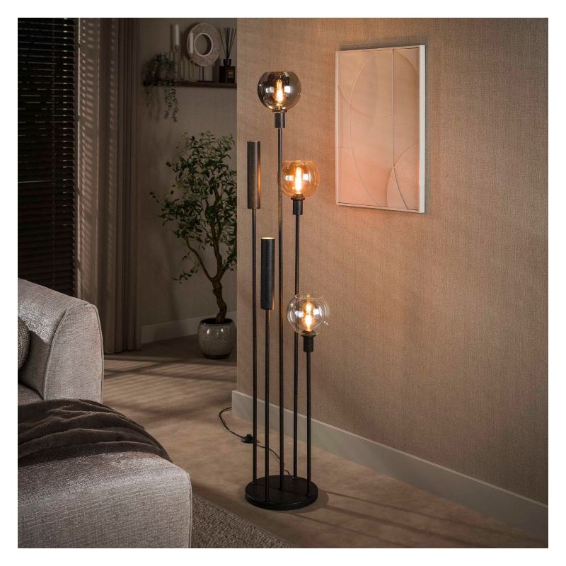 LAMPA STOJĄCA OMERO CZARNA Lampa stojąca OMERO to idealne rozwiązanie do każdego wnętrza w stylu industrialnym czy nowoczesnym, gdzie lampa ta stanie się nie tylko częścią oświetlenia, ale także przepiękną dekoracją, która doda przestrzeni charakteru. Głównym elementem lampy są jej klosze wykonane z czarnego, przydymionego szkła, których forma i barwa...