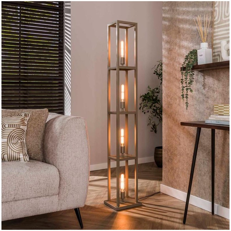 Lampa podłogowa INKUB łączy w sobie wyjątkowy element oświetleniowy oraz nowoczesny design z industrialnym charakterem. Jej konstrukcja oparta jest na czterech geometrycznych kloszach o prostokątnych ramach ułożonych pionowo, wykonanych z metalu o wykończeniu beżowym. Dzięki takiej oprawie wszystkie źródła światła są w pełni wyeksponowane, co pozwala uzyskać efekt przestrzennego, harmonijnego oświetlenia. Otwarta konstrukcja kloszy sprawia, że żarówki pełnią nie tylko funkcję użytkową, ale również dekoracyjną, dodając wnętrzu wyjątkowego charakteru. Emitowane przez lampę ciepłe światło tworzy przytulną atmosferę, idealną do salonu, sypialni czy nawet eleganckiego biura. Dzięki swojej nietuzinkowej formie i oryginalnemu wyglądowi bez wątpienia przyciąga wzrok, stając się jednocześnie efektowną ozdobą każdego nowoczesnego wnętrza. Cztery punkty światła doskonale rozpraszają blask po całym pomieszczeniu, pozwalając lampie emitować ciepłe jednocześnie wprowadzając przytulny nastrój. INKUB to doskonały wybór dla osób ceniących połączenie funkcjonalności z unikalnym designem, który wzbogaci zarówno wnętrza loftowe, jak i klasyczne aranżacje.