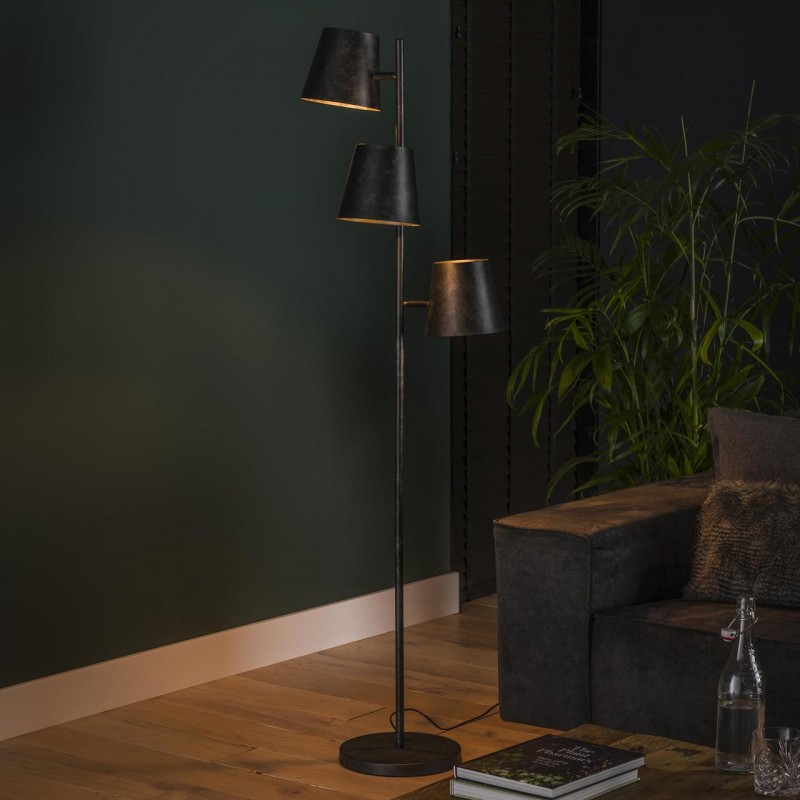 Lampa podłogowa KLASYK do salonu lub sypialni została wyposażona w trzy klosze z otworem u góry i u dołu. Każdy z nich posiada przegub kulowy, dzięki czemu można je ułożyć w dowolnej pozycji. Lampa wykonana jest ze stali z wykończeniem w kolorze antracyt, ciemnoszarym. Produkt należy do serii składającej się z lampy podłogowej i dwóch lamp wiszących. Dla uzyskania efektu widocznego na zdjęciach zalecane jest użycie żarówek LED znajdujących się w naszym sklepie pod kodem NL18463/39A.