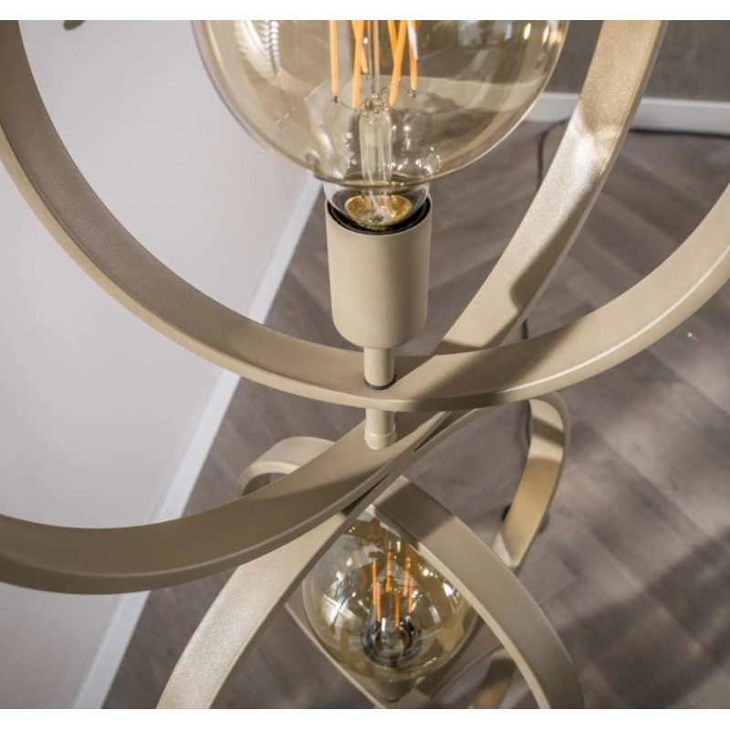 Lampa podłogowa LUI swoim unikatowym i nowoczesnym designem doskonale wkomponuje się w każde wnętrza loftowe oraz industrialne. Jej nietypowy wygląd od razu przyciąga wzrok sprawiając, że może ona stać się unikatową ozdobą nowoczesnej sypialni oraz salonu. Model ten wykonany został w całości z metalu w beżowym kolorze. Lampa posiada trzy źródła światła i po dwa pierścienie różnej wielkości, które można swobodnie obracać o 360 stopni pozostawiając w dowolnej pozycji według własnych upodobań. Celowo pominięto w niej klosze, a dzięki otwartej oprawie można w niej z łatwością umieścić dekoracyjne żarówki w celu stworzenia odpowiedniego efektu. Ta nowoczesna lampa podłogowa LUI to doskonały dodatek, dzięki któremu w ciekawy sposób ozdobisz Twoją przestrzeń wprowadzając do niej ciepły blask światła.