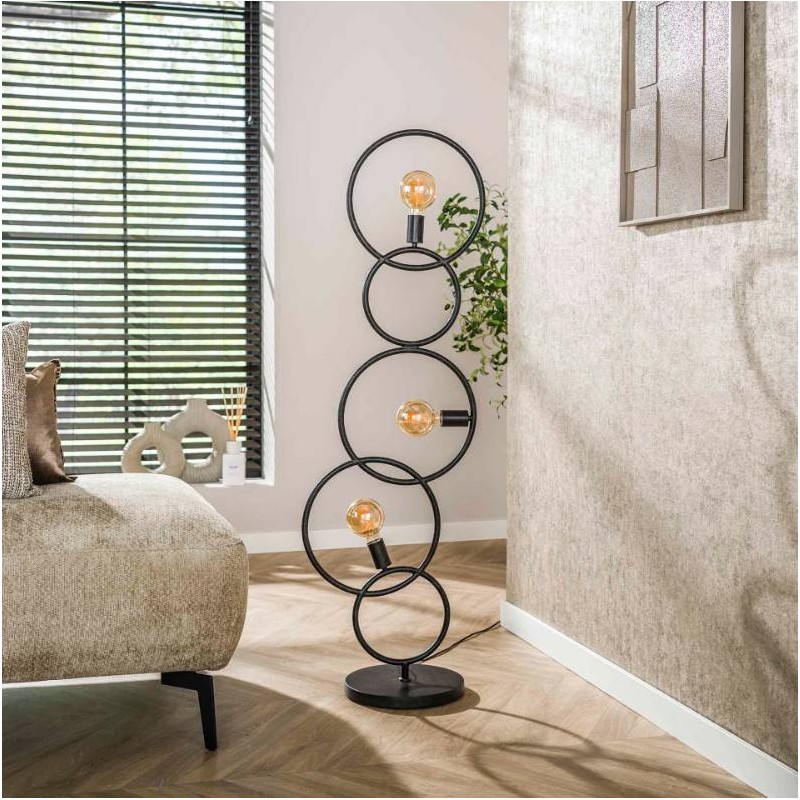 LAMPA PODŁOGOWA LUI METALOWA CIEMNOSZARA Industrialna lampa wolnostojąca do salonu została wykonana z metalu z wykończeniem w kolorze ciemnoszarym. Zewnętrzne okręgi są ze sobą połączone, natomiast wewnętrzne można obracać o 360 stopni, umożliwiając umieszczenie ich w dowolnej pozycji. Przez brak masywnych kloszy tłumiących światło pomieszczenie staje się...