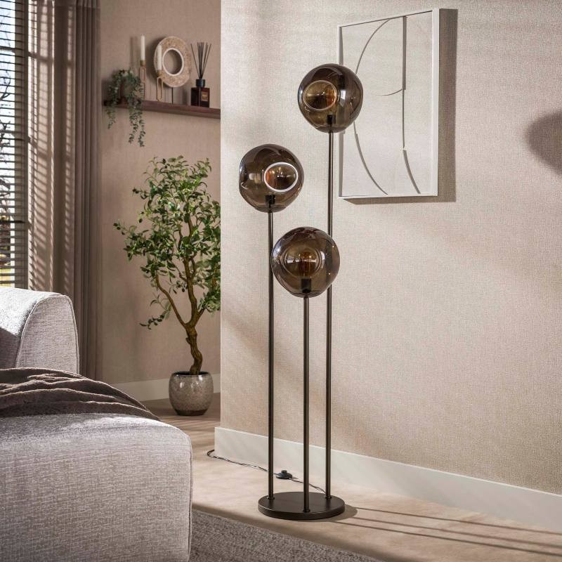 LAMPA PODŁOGOWA KLASYK METALOWA CIEMNOSZARA Lampa podłogowa KLASYK do salonu lub sypialni została wyposażona w trzy klosze z otworem u góry i u dołu. Każdy z nich posiada przegub kulowy, dzięki czemu można je ułożyć w dowolnej pozycji. Lampa wykonana jest ze stali z wykończeniem w kolorze antracyt, ciemnoszarym. Produkt należy do serii składającej się z...