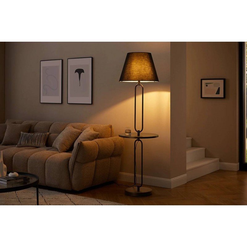 Lampa podłogowa SERVANT to propozycja dla miłośników nowoczesnego designu. Wykonana z czarnego metalu, z dopasowanym czarnym kloszem, wyróżnia się praktycznym, okrągłym blatem umieszczonym w centralnej części podstawy. To nie tylko źródło światła, ale również efektowny element dekoracyjny, który doda elegancji każdemu wnętrzu. Wbudowana półka stołowa zapewnia miejsce na książki, piloty czy ozdobne przedmioty. Czarne wykończenie nadaje lampie nowoczesnego charakteru, a oryginalna metalowa rama z półką wprowadza stylowy akcent w minimalistycznej formie, łącząc nastrojowość z funkcjonalnością. Jej okrągła, metaliczna podstawa o nietypowej strukturze nadaje całości wyrazistego charakteru i oryginalnego wyglądu. Efekt końcowy połączenia koloru klosza z podstawą utrzymaną w jednej tonacji jest fenomenalny nadając całości piękny i niepowtarzalny wygląd. Lampa SERVANT łączy w sobie dwie doskonale uzupełniające się funkcje takie jak oświetlenie oraz stolik pomocniczy. Idealnie odnajdzie się w przestrzeniach urządzonych w stylu industrialnym i nowoczesnym, stanowiąc zarówno praktyczne rozwiązanie, jak i designerską ozdobę.