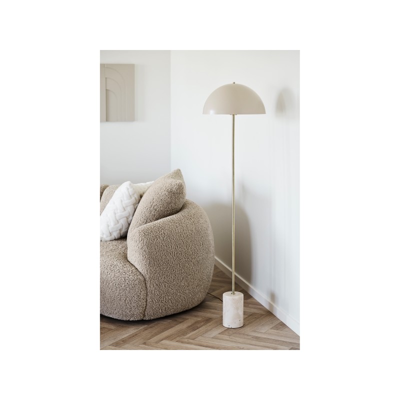 Lampa podłogowa Sheffield to stylowe połączenie elegancji i ponadczasowego designu, które doskonale dopełni wystrój salonu, sypialni lub kącika wypoczynkowego. Beżowy, półkolisty klosz subtelnie rozprasza światło (źródło światła nie jest dołączone), tworząc przytulną i nastrojową atmosferę we wnętrzu. Solidna marmurowa podstawa w zestawieniu z metalową konstrukcją nadaje lampie stabilności i luksusowego charakteru. Stonowana kolorystyka oraz minimalistyczna forma sprawiają, że lampa Sheffield harmonijnie wpisuje się zarówno w nowoczesne, jak i klasyczne aranżacje.