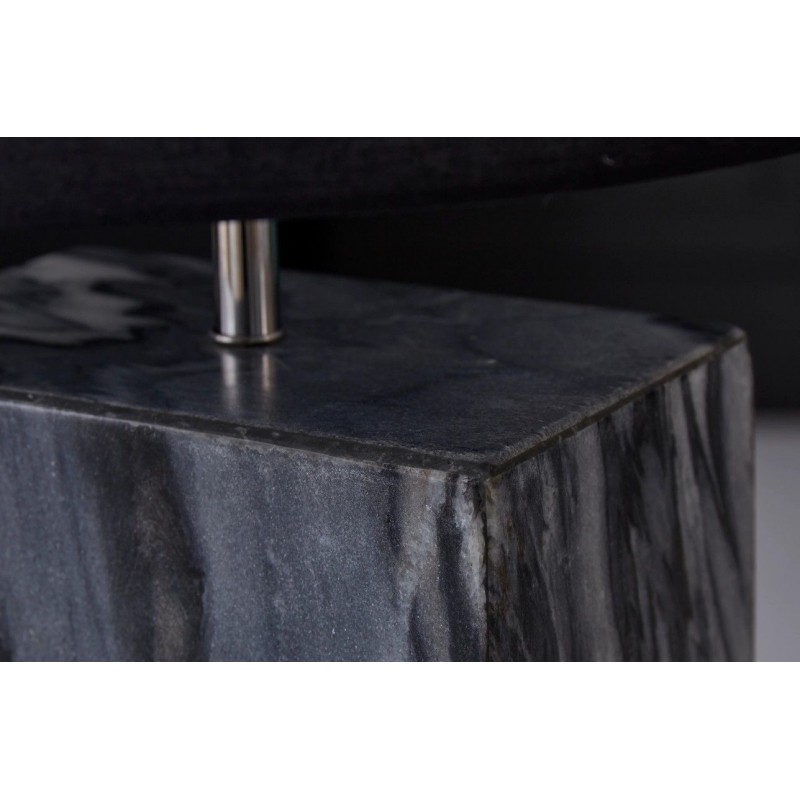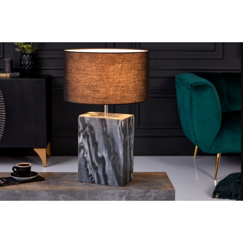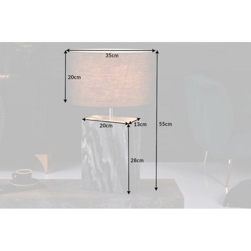 Podstawa lampy NOBLE została wykonana z szarego marmuru, z zachowaniem naturalnej struktury kamienia. Przeplatające się nitki w odcieniach szarości, bieli i beżu nadają każdemu egzemplarzowi unikalny, niepowtarzalny charakter. Marmur nie tylko zachwyca szlachetnym wyglądem, ale również gwarantuje trwałość i stabilność. Solidna, kamienna podstawa dostosowana jest idealnie do osadzenia na niej czarnego klosza, który delikatnie rozprasza światło subtelnie rozświetlając wnętrze i budując przytulną atmosferę. Głęboka czerń klosza tworzy wyrazisty kontrast z szarym marmurem, tworząc harmonijną i elegancką całość. Lampa NOBLE zachwyca prostą formą i wysokiej jakości materiałami. To nie tylko praktyczne źródło światła, ale także efektowny element dekoracyjny, który doda wnętrzu charakteru i stylu. Doskonale odnajdzie się w przestrzeniach nowoczesnych i minimalistycznych, zarówno w salonie, sypialni, jak i w biurze.