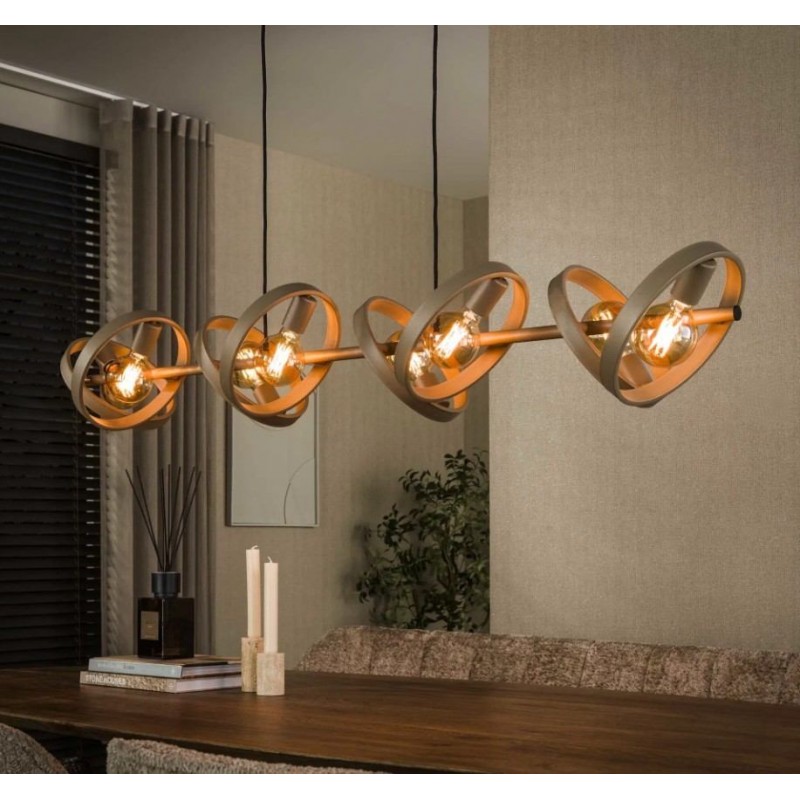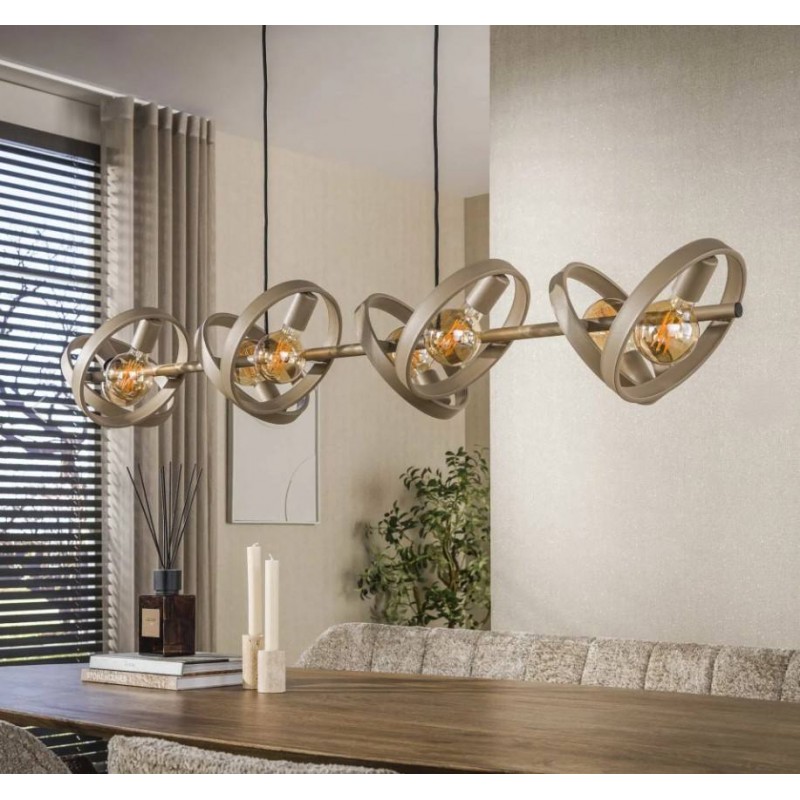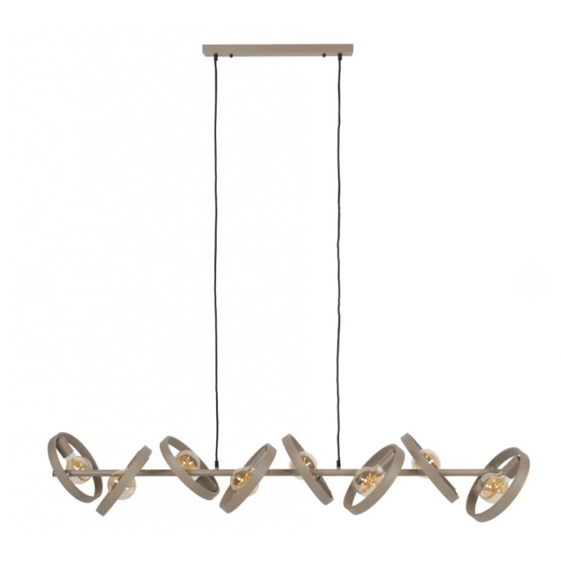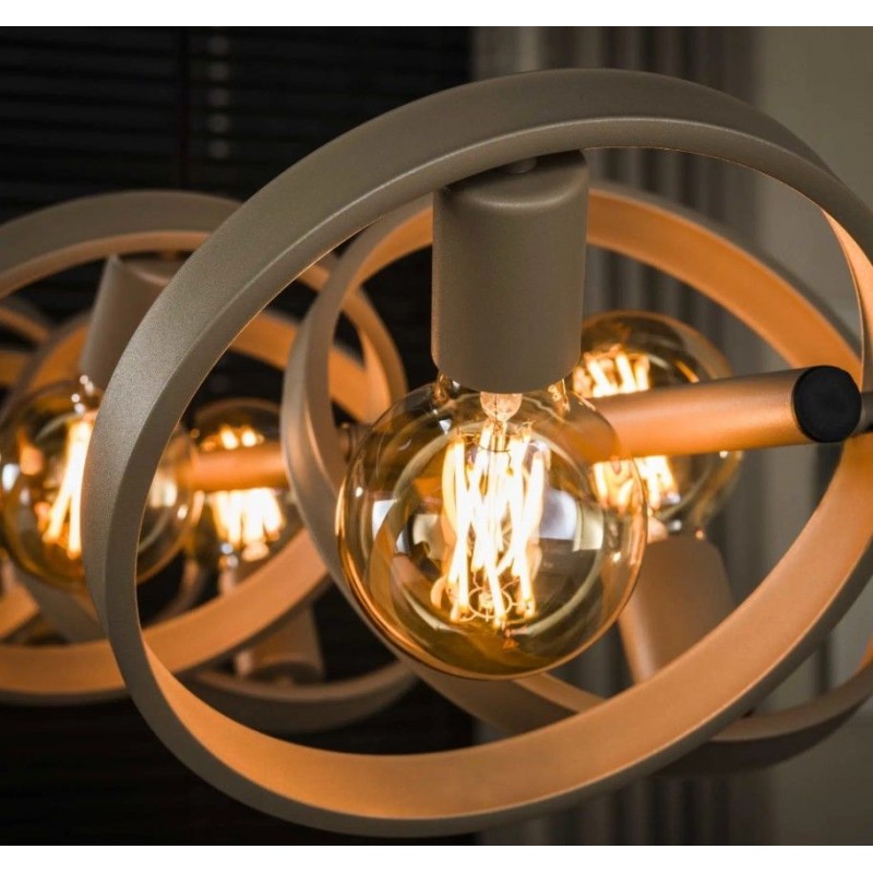 Lampa ARES swoim unikatowym i nowoczesnym designem doskonale wkomponuje się w każde wnętrza loftowe oraz industrialne. Jej nietypowy wygląd od razu przyciąga wzrok sprawiając, że może ona stać się unikatową ozdobą nowoczesnej jadalni oraz salonu. Model ten wykonany został z metalu w beżowym kolorze, lampa ta posiada osiem źródeł światła w formie pierścieni, które można swobodnie obracać pozostawiając w dowolnej pozycji według własnych upodobań. Otwarta konstrukcja kloszy sprawia, że żarówki pełnią nie tylko funkcję użytkową, ale również dekoracyjną, dodając wnętrzu wyjątkowego charakteru. Dodatkową funkcjonalność zapewnia jej możliwość dostosowania wysokości do 150 cm, co pozwala na pełne dopasowanie oświetlenia do indywidualnych preferencji użytkownika oraz stylu wnętrza. Emitowane przez lampę ciepłe światło wprowadza przytulny nastrój, idealny zarówno do salonu jak i jadalni. Dzięki swojemu wyglądowi ARES bez wątpienia przyciąga wzrok stając się efektowną ozdobą nowoczesnych wnętrz jest to propozycja dla osób ceniących funkcjonalność połączoną z oryginalnym designem, który doskonale uzupełnia zarówno aranżacje loftowe, jak i klasyczne.