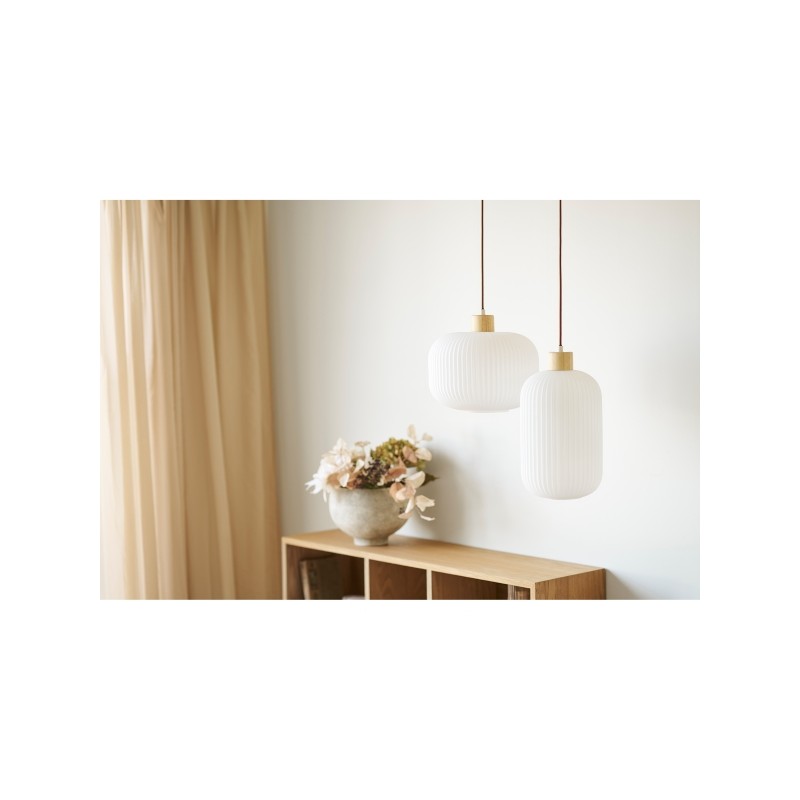 LAMPA WISZĄCA ARGALO 30CM Lampa wisząca Argalo to harmonijne połączenie nowoczesnego designu z naturalnymi akcentami. Biały, szklany klosz o średnicy 30 cm subtelnie rozprasza światło, zapewniając przyjemną i ciepłą atmosferę we wnętrzu. Drewniany detal u góry lampy dodaje jej lekkości i skandynawskiego charakteru, dzięki czemu doskonale pasuje do salonu,...