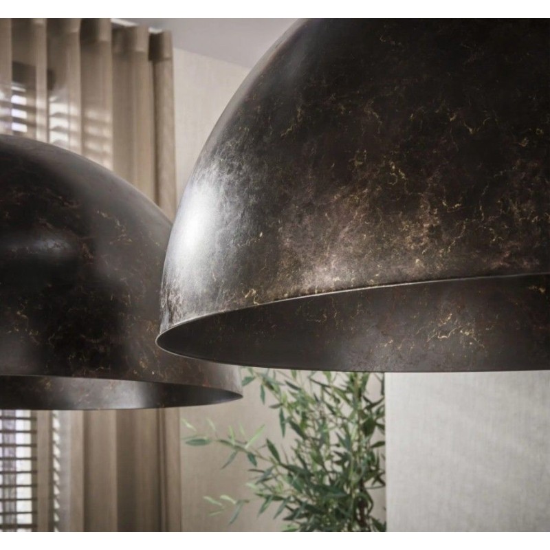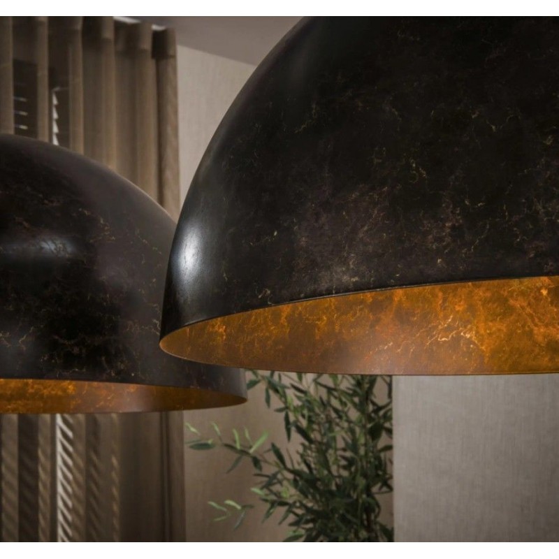 LAMPA WISZĄCA ALMAR METALOWA CZARNO-BRĄZOWA IV Industrialna lampa wisząca do jadalni idealnie sprawdzi się nad stołem do jadalni lub stołem barowym. Metalowa lampa w kolorze mieszanym czarno-brązowym wyposażona została w trzy półokrągłe klosze o średnicy 25 cm. Trzy klosze z wieloma drobnymi otworami o nietuzinkowym wyglądzie idealnie rozprowadzają...