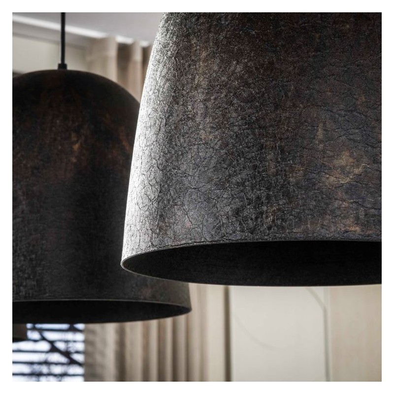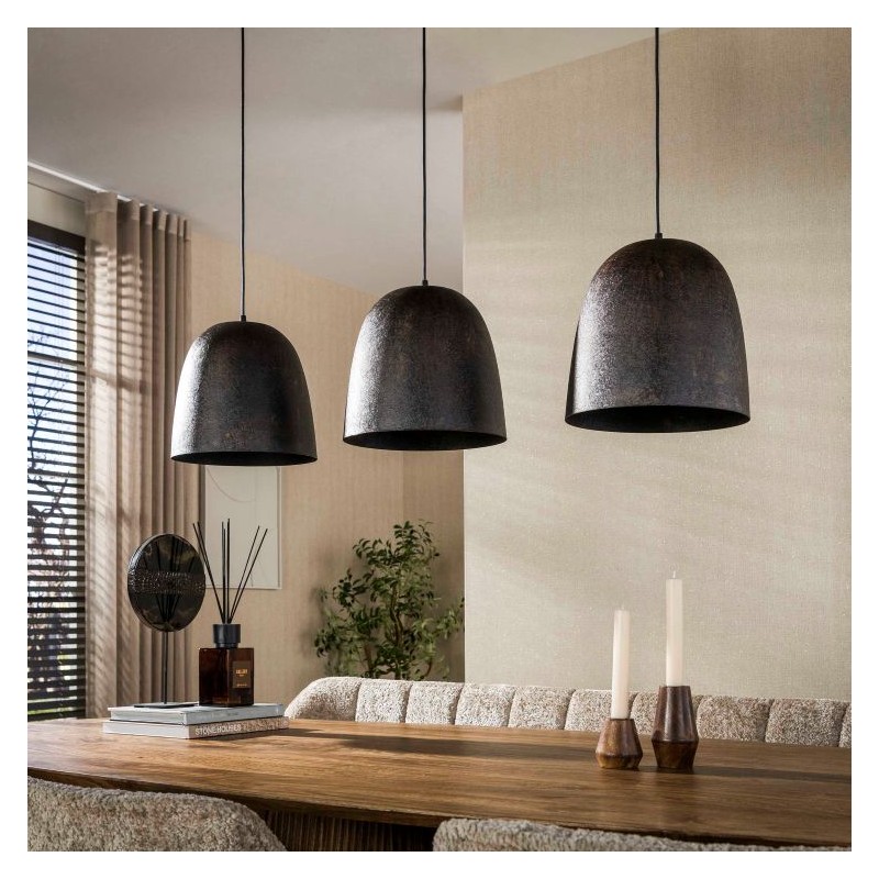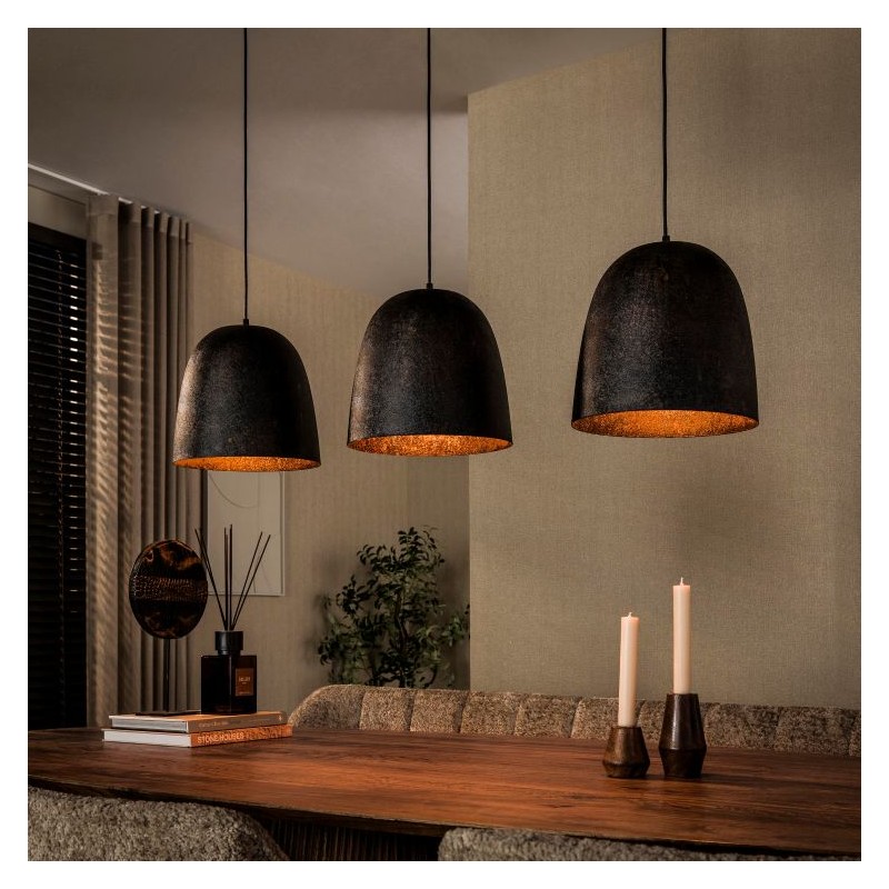 Lampa KIARA swoim wyjątkowym wzornictwem idealnie odnajdzie się w wielu nowoczesnych wnętrzach wykończonych w stylu industrialnym, retro czy vintage. A jej nietypowy wygląd oraz wzór kloszy od razu przyciągają wzrok sprawiając, że może ona stać się unikatową ozdobą twojej nowoczesnej jadalni czy też salonu. Ta niezwykle piękna lampa została wykonana ręcznie z metalu w kolorze brązowym. Całość prezentuje się bardzo stylowo, sprawiając tym samym, że każdy jej egzemplarz jest unikatowy i niepowtarzalny. Trzy klosze ustawione ze sobą poziomo w wykończeniu dymionego brązu, powodują że rozproszenie światła tworzy przytulną atmosferę nadając wnętrzu wyjątkowego charakteru. Bez wątpienia dodatkowym jej atutem jest łatwość zamontowana do sufitu oraz możliwość regulacji na dowolnej wysokości do 150 cm. Lampa wisząca KIARA to bez wątpienia wyrafinowana lampa, która idealnie wpasuje się zarówno do industrialnego oraz nowoczesnego wnętrza.