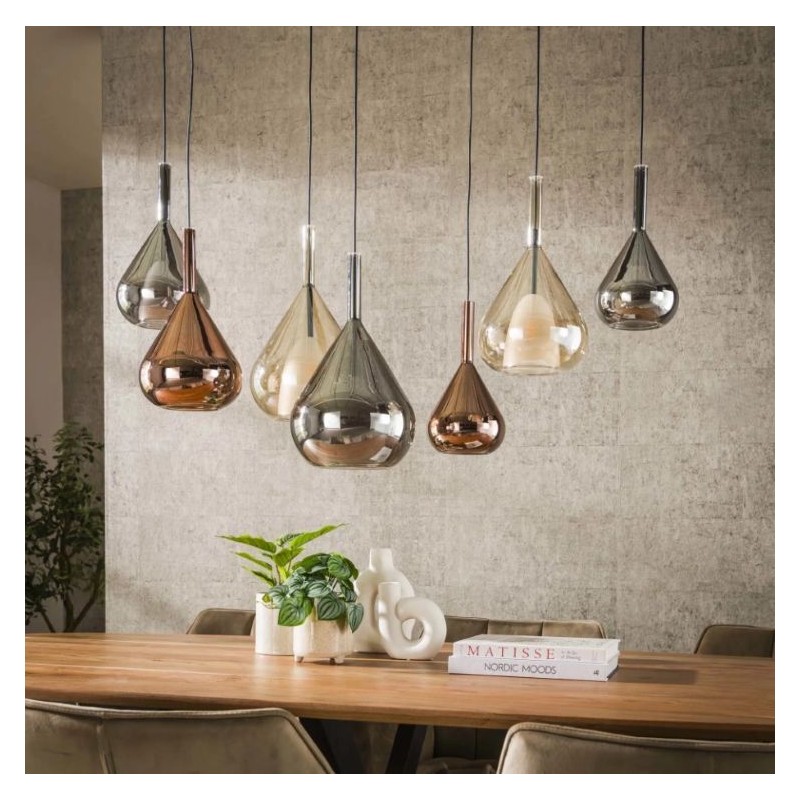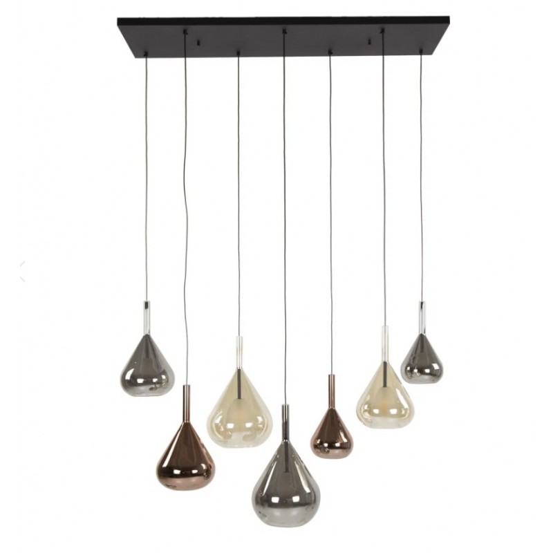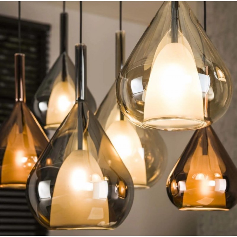 Lampa wisząca RUI to idealne rozwiązanie do każdego pomieszczenia w stylu nowoczesnym, gdzie lampa ta będzie pełniła funkcję nie tylko oświetlenia, ale także przepięknej dekoracji, która bez wątpienia przykuję uwagę każdego. Podstawę lampy stanowi metalowa konstrukcja w ciemnym kolorze, która dodaje jej charakteru i ciekawego wyglądu. Główną części lampy stanowi siedem różnych wielkości oraz kolorów szklanych kloszy, których barwa niesamowita forma i kształt sprawiają, że prezentują się zjawiskowo i idealnie komponują się z ciemnym kolorem podstawy. Dodatkowym atutem lampy jest wysokość, którą można swobodnie regulować do 150cm oraz dostosowując ją odpowiednio do własnych potrzeb. Dzięki takiej konstrukcji kloszy żarówki pełnią nie tylko funkcję oświetleniową, ale także dekoracyjną. To rozwiązanie pozwala jej emitować ciepłe, rozproszone światło, które wprowadza przytulny nastrój. RUI to bez wątpienia lampa, która świetnie odnajdzie się zarówno w salonie, jak i jadalni dodając tym samym przestrzeni niesamowitej wyrazistości, a jej struktura kloszy zapewnia efektowne, nastrojowe oświetlenie.