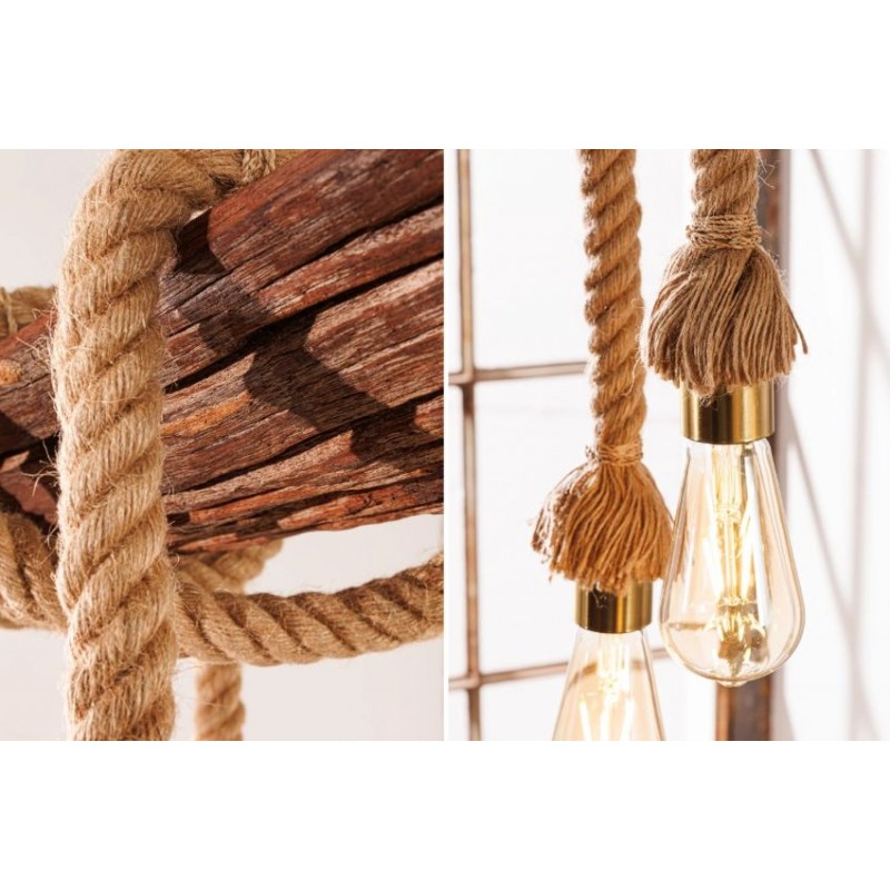LAMPA WISZĄCA BARRACUDA 70 CM DOSTĘPNA OD RĘKI - 1SZTUKA. Posiada 3 źródła światła usytuowanych na ozdobnych linach owiniętych na drewnianym elemencie. Lampa sprzedawana bez żarówki. W serii BARRACUDA występują także stoły, stoliki kawowe, komody, konsole, stojaki na wino, regały oraz lampy, - patrz produkty powiązane. Produkt jest wykonany z surowców...
