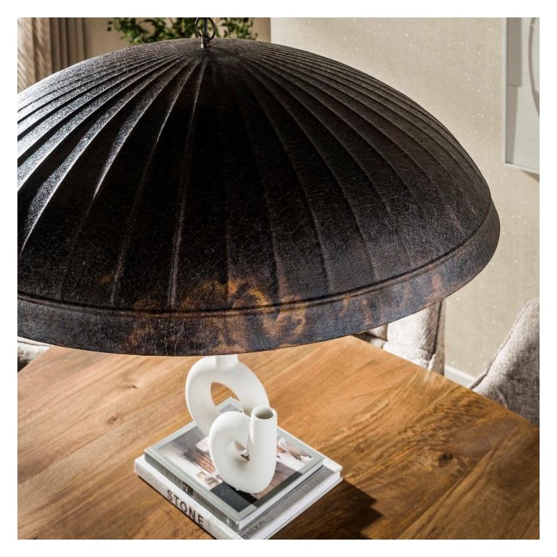 Lampa TOPPER swoim wyjątkowym wzornictwem idealnie odnajdzie się w wielu nowoczesnych wnętrzach wykończonych w stylu industrialnym, retro czy vintage. A jej nietypowy wygląd oraz wzór klosza od razu przyciągają wzrok sprawiając, że może ona stać się unikatową ozdobą twojej nowoczesnej jadalni czy też salonu. Ta niezwykle piękna lampa została wykonana ręcznie z metalu w kolorze brązowym, którą zdobią pionowe prążki. Całość prezentuje się bardzo stylowo, sprawiając tym samym, że każdy jej egzemplarz jest unikatowy i niepowtarzalny. Szeroki klosz o wykończeniu dymionego brązu, powodują że rozproszenie światła tworzy przytulną atmosferę nadając wnętrzu wyjątkowego charakteru. Bez wątpienia dodatkowym jej atutem jest łatwość zamontowana do sufitu oraz możliwość regulacji na dowolnej wysokości do 150 cm. Lampa wisząca TOPPER to bez wątpienia wyrafinowana lampa, która idealnie wpasuje się zarówno do industrialnego oraz nowoczesnego wnętrza.