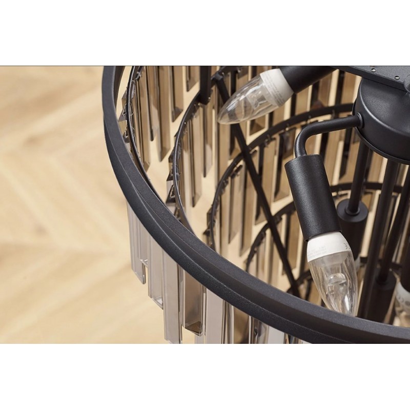 Dodatkowe informacje | szklane elementy subtelnie odbijają światło, tworząc wspaniały efekt wizualny, czarna metalowa konstrukcja w połączeniu ze szkłem w odcieniach szarości nadaje lampie wyjątkowy, ponadczasowy wygląd. |