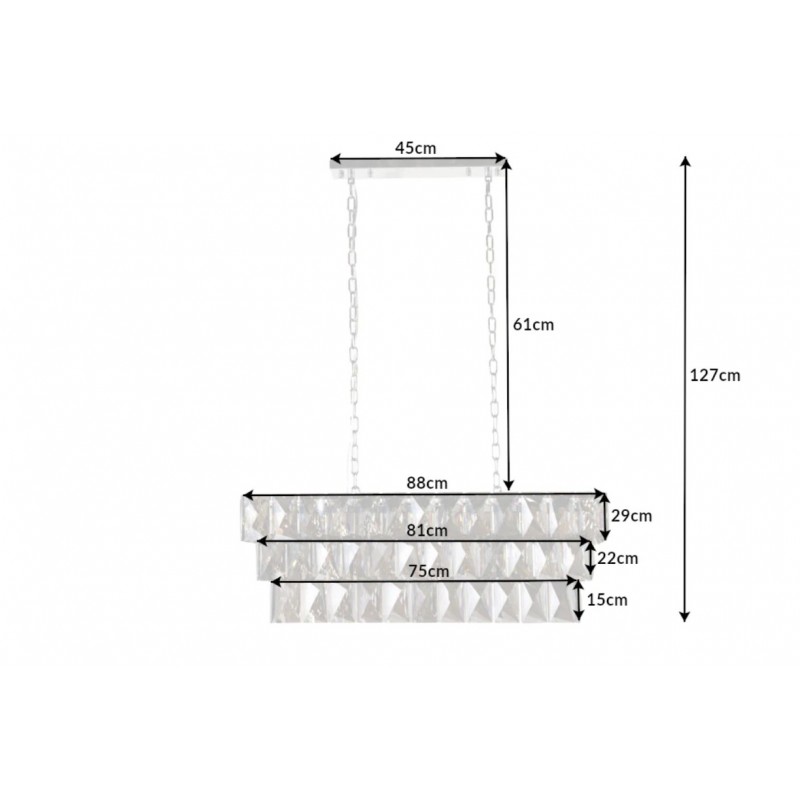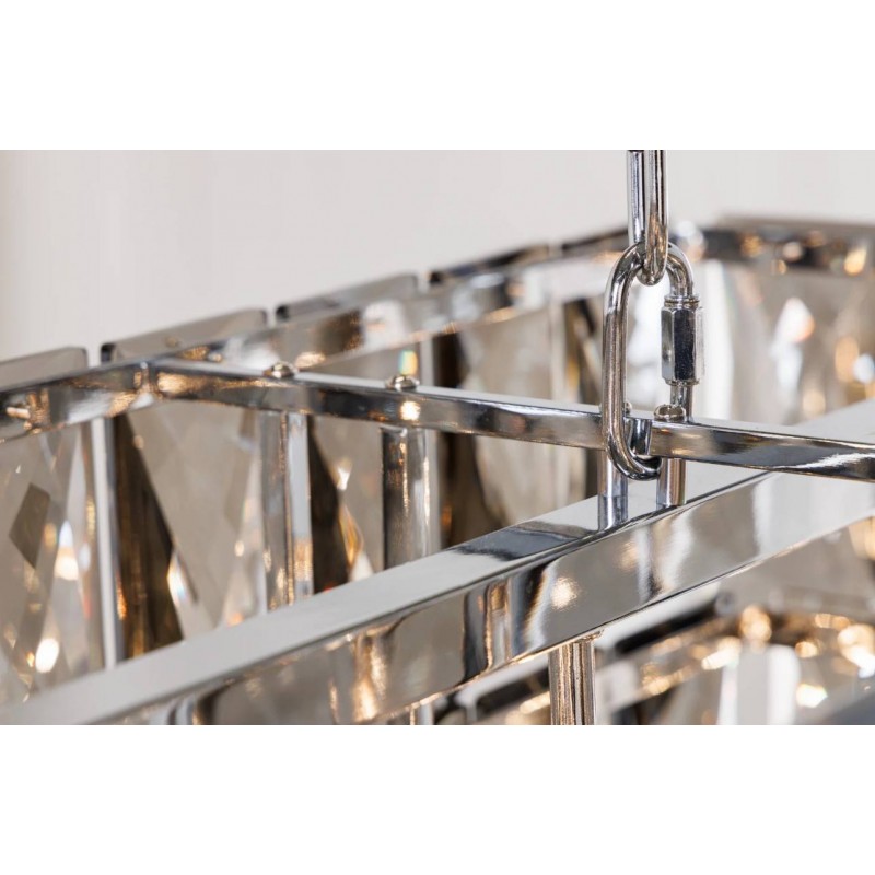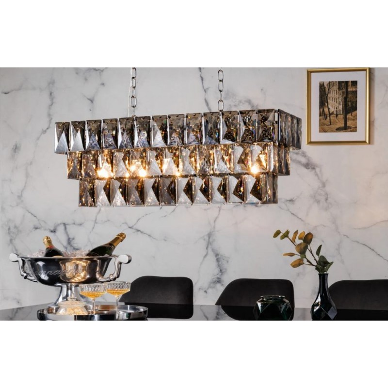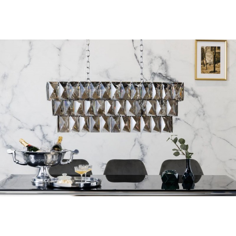 | Dodatkowe informacje | szklane elementy subtelnie odbijają światło, tworząc wspaniały efekt wizualny, srebrna metalowa konstrukcja w połączeniu ze szkłem w odcieniach szarości nadaje lampie wyjątkowy, ponadczasowy wygląd. |