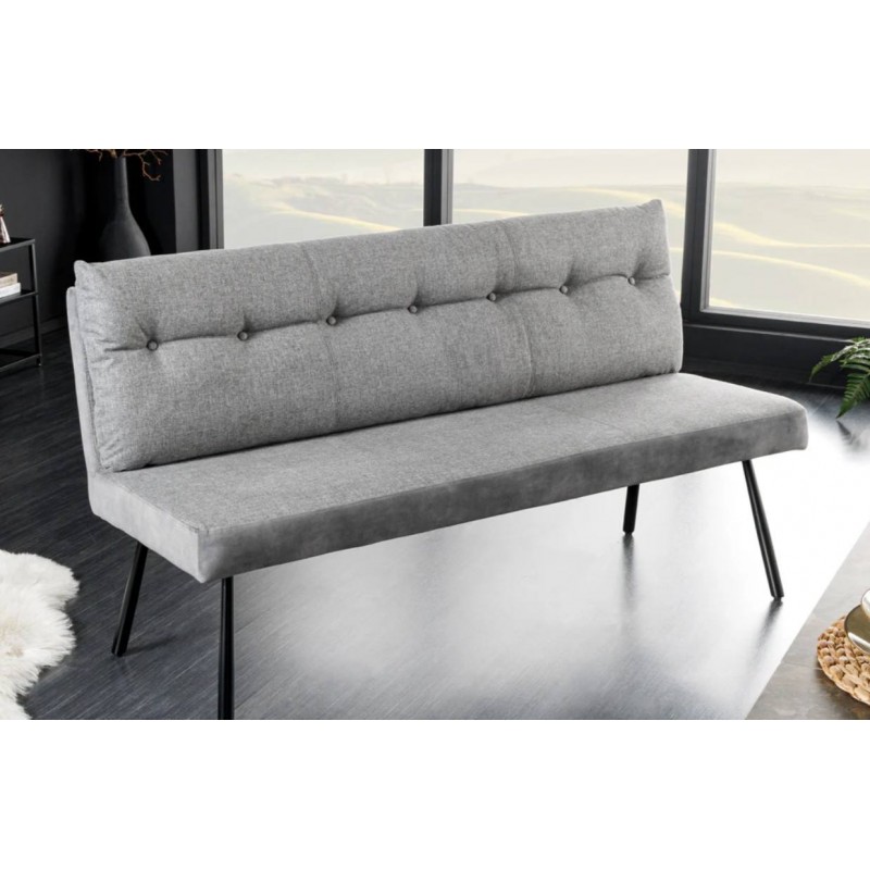 Ta nowoczesna ławka BIG GEORGE to funkcjonalne i praktyczne rozwiązanie pasujące zarówno do stylowej nowoczesnej jadalni jak i do salonu w stylu klasycznym. Wygodne siedzisko wykonane zostało z podwójnej tkaniny na zewnątrz użyto tkaniny welurowej, natomiast jego wnętrze zdobi modna pleciona tkanina w kolorze szarym. Dzięki zastosowaniu dekoracyjnych przeszyć oraz pikowań całość nabiera niezwykłej elegancji. Mebel osadzony został na stabilnej smukłej czarnej metalowej podstawie nadającej wyjątkowy design. Prezentowana ławka wykonana jest z wysokiej jakości materiałów nadającym wnętrzu niezwykle ekskluzywnego wyglądu, zapewniając jednocześnie dzięki zastosowaniu w jej siedzisku sprężyn wygodne miejsce do siedzenia. Ważnym jej elementem jest wyprofilowane oparcie oraz siedzisko, które odpowiednio wspierają sylwetkę siedzącego podczas użytkowania. Ławka BIG GEORGE sprawdzi się idealnie w każdym pomieszczeniu w stylu nowoczesnym, gdzie doda przestrzeni nie tylko elegancji i funkcjonalności, a także dzięki swojej wygodnej formie stanie się znakomitym meblem do użytkowania przez wiele godzin, dodając przestrzeni niezwykle oryginalnego charakteru.