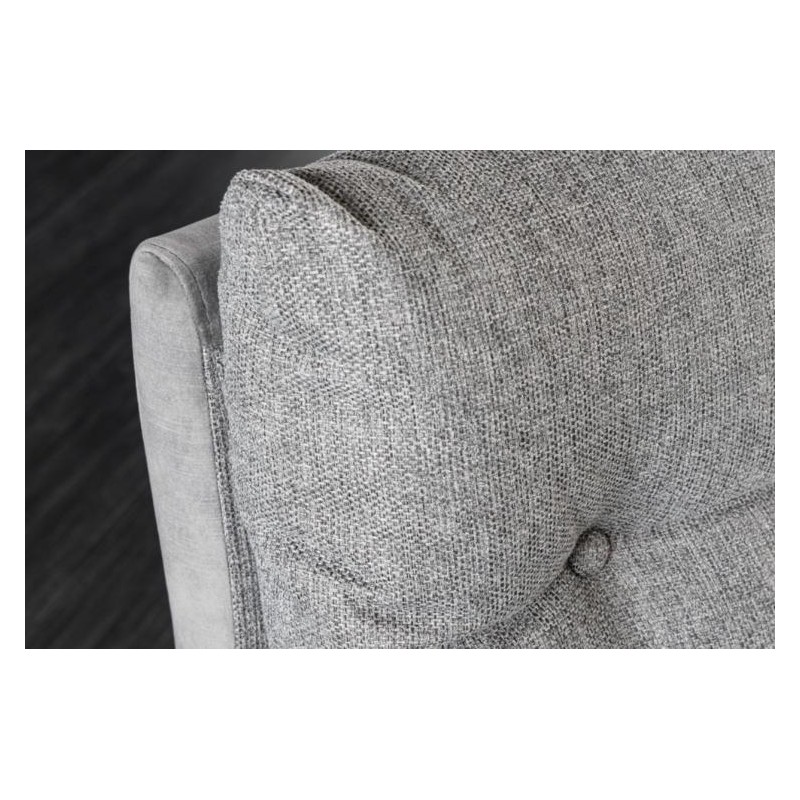 KRZESŁO BIG GEORGE Ekskluzywne krzesło Big George do stołu kuchennego lub biurowego to nowoczesny mebel, którego tapicerowane siedzisko zostało postawione na czarnych, metalowych nogach. Krzesło wykonano z podwójnej tkaniny na zewnątrz użyto tkaniny welurowej, natomiast jego wnętrze zdobi tkanina pleciona w kolorze jasnoszarym. Pikowania na oparciu...