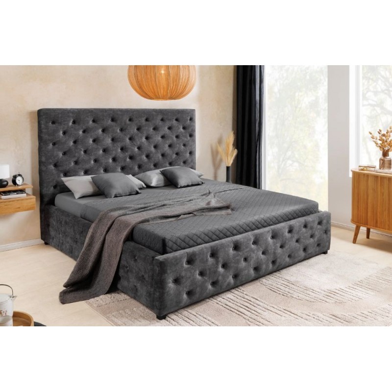 ŁÓŻKO PARIS CHESTERFIELD 160X200 CM WELUR SZARY