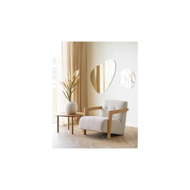 Lustro ścienne Devonport to nowoczesny element dekoracyjny, który zachwyca swoim organicznym kształtem i eleganckim wykończeniem. Nieregularna, płynna forma nadaje mu artystycznego charakteru, dzięki czemu świetnie ożywia aranżację i wprowadza do pomieszczenia subtelny dynamizm.